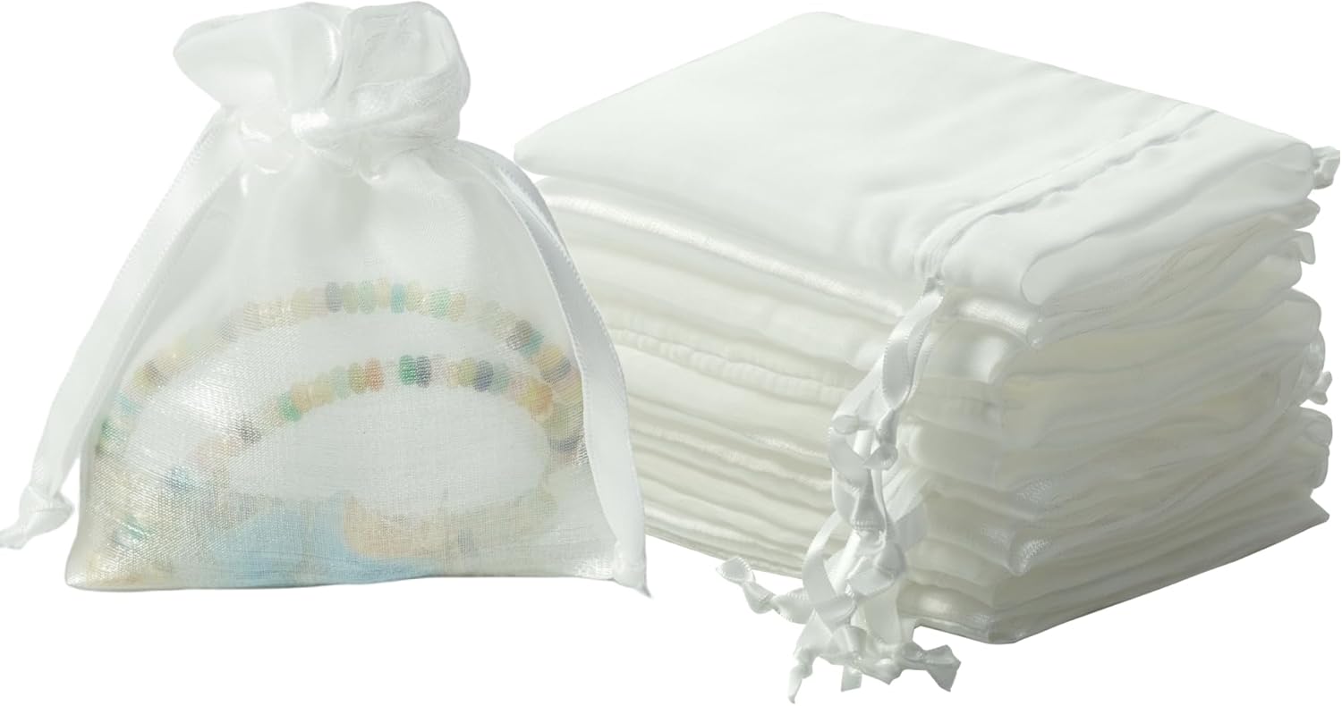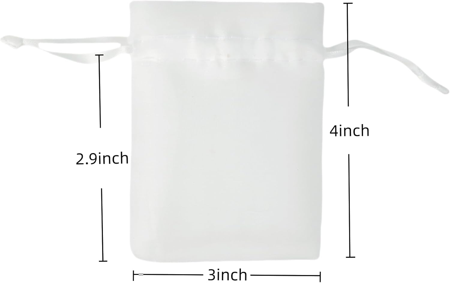• SIZE: These tiny drawstring mesh pouches combine functionality with elegance, the sheer organza fabric beautifully displays contents while securely holding. Measuring 3" x 4" (7.6 x 10cm), package include 20pcs reusable organza bags. Measure your items before choosing sizes