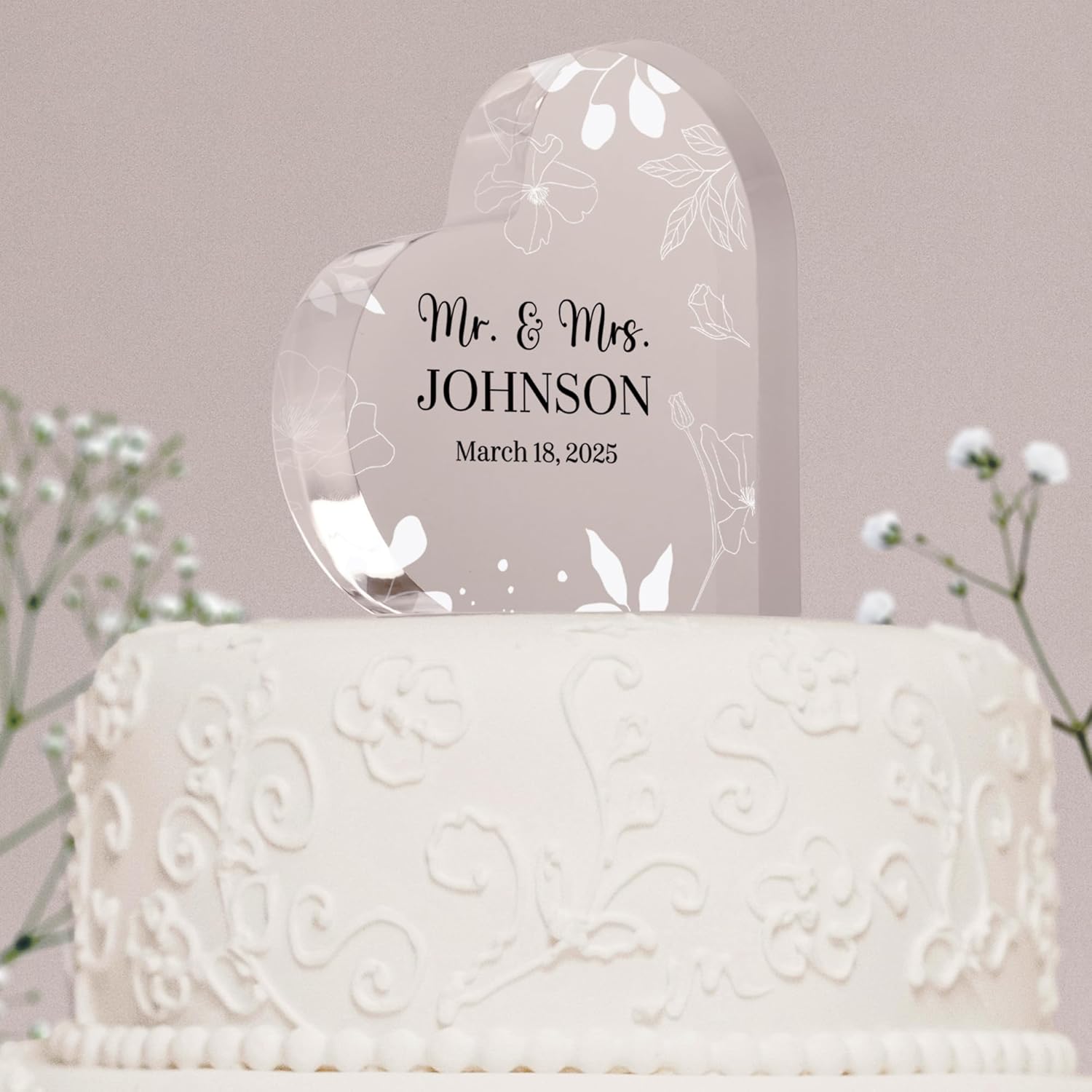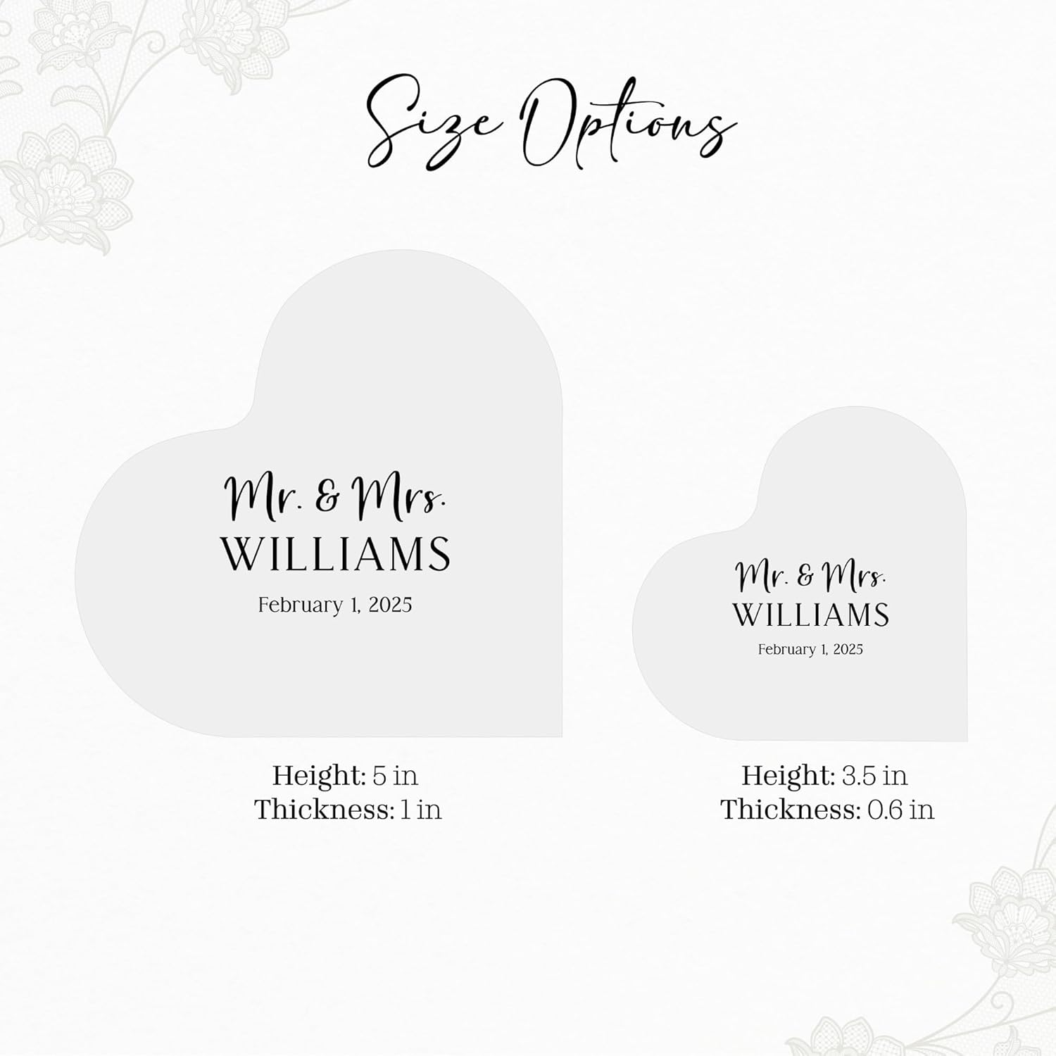 Personalized Wedding Heart Acrylic Block Mr & Mrs Cake Topper, Custom Wedding Keepsake Bride & Groom