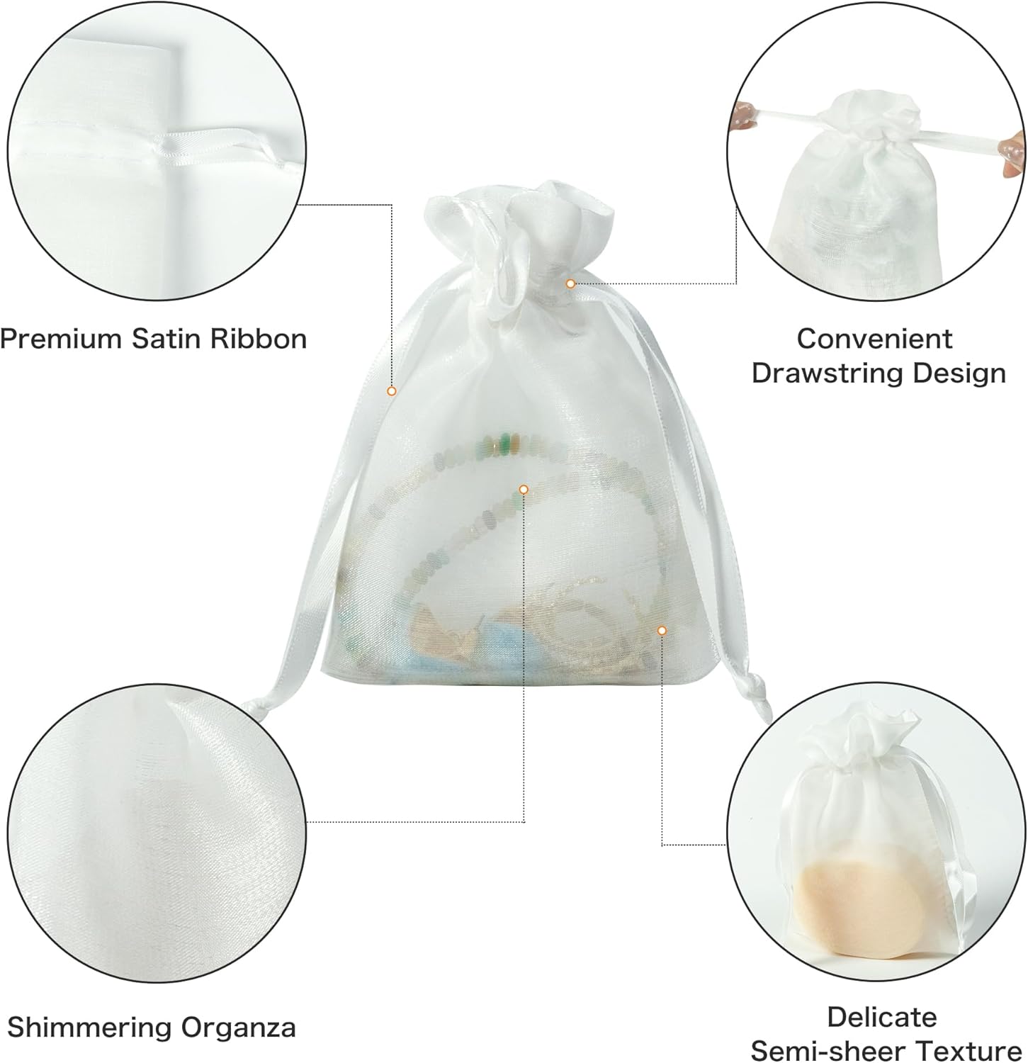 • PREMIUM MATERIAL: Crafted with high-density organza and satin drawstrings, these favor bags have a glamorous gloss that changes with the light, which is different from ordinary organza bags, makes it beautiful and elegant, which is good for special occasions. The delicate sheer fabric combines ethereal translucency with surprising durability, transform small items like jewelry and cosmetics into luxurious displays