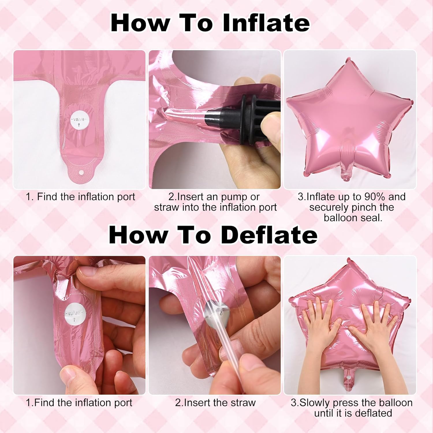 • πŸ’β™»οΈγ€Rich & Reusable 18" Foil Balloons】: The rich foil balloons enhance the design sense of the decoration. They can be reused according to the instructions, bring a festive and fun atmosphere to any occasion, time and time again! πŸŽˆπŸŽ‰οΌˆPlease place the hand pump under the transparent protective film at the balloon inflation port to inflate. After the activity, insert the attached straw under the protective film and gently press to deflate it for reuse.)