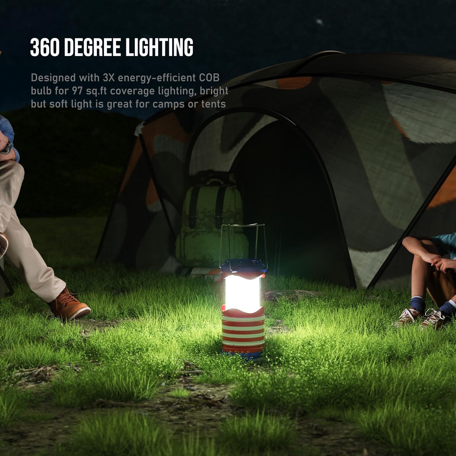 • ULTRA BRIGHT & SAFE: Designed with 30 energy-efficient LED for 360 degree lighting (97 sq.ft coverage), the latest COB technology features 350 lumens, emits softer and brighter light than other LED lantern; Use 3 AA batteries (not included)
