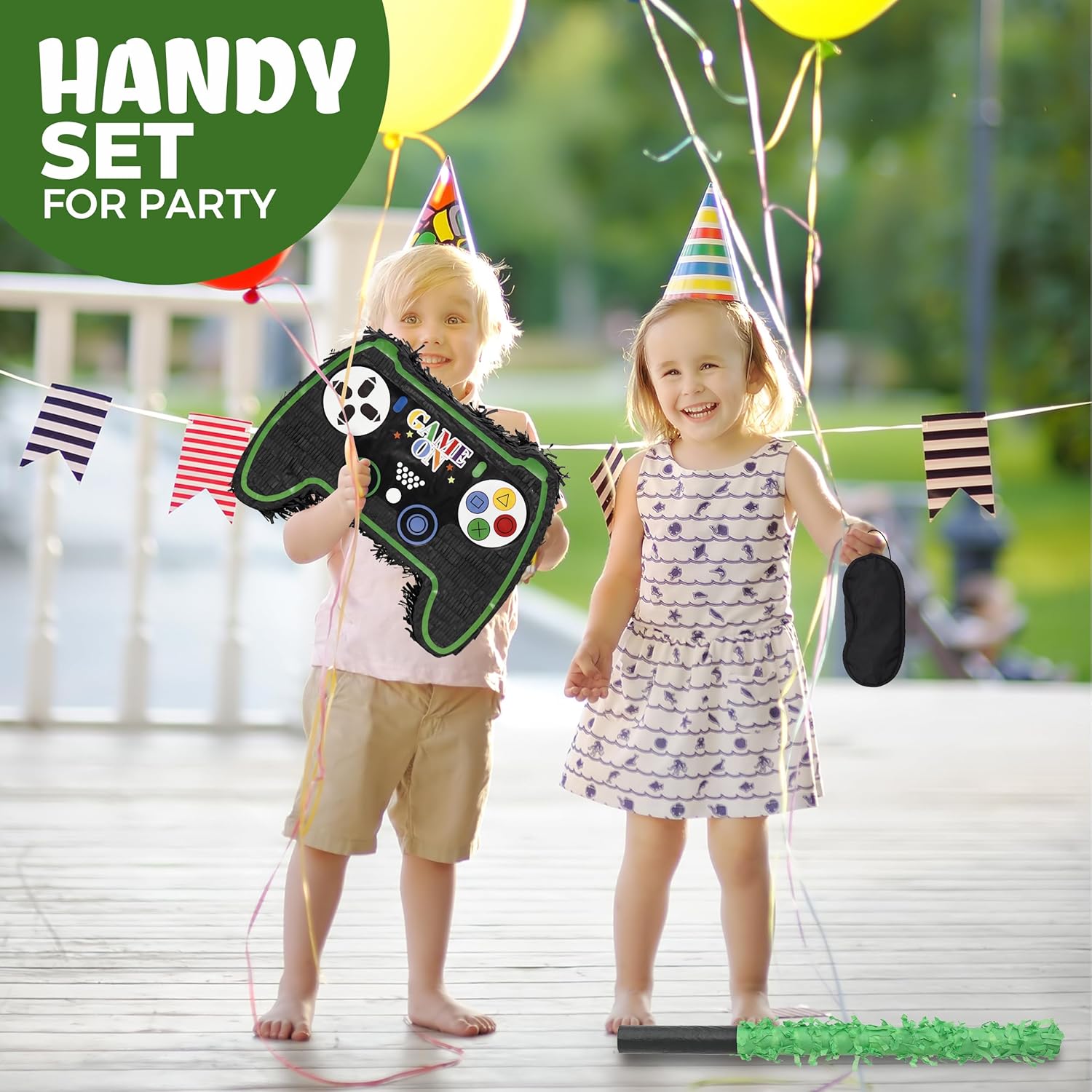Video Game Controller Pinatas Bundle with a Blindfold and a Bat(16.5 x 12 x 3.5 Inches), Perfect for kid's Birthday Parties, Gaming Theme Parties for Boys, Decorations