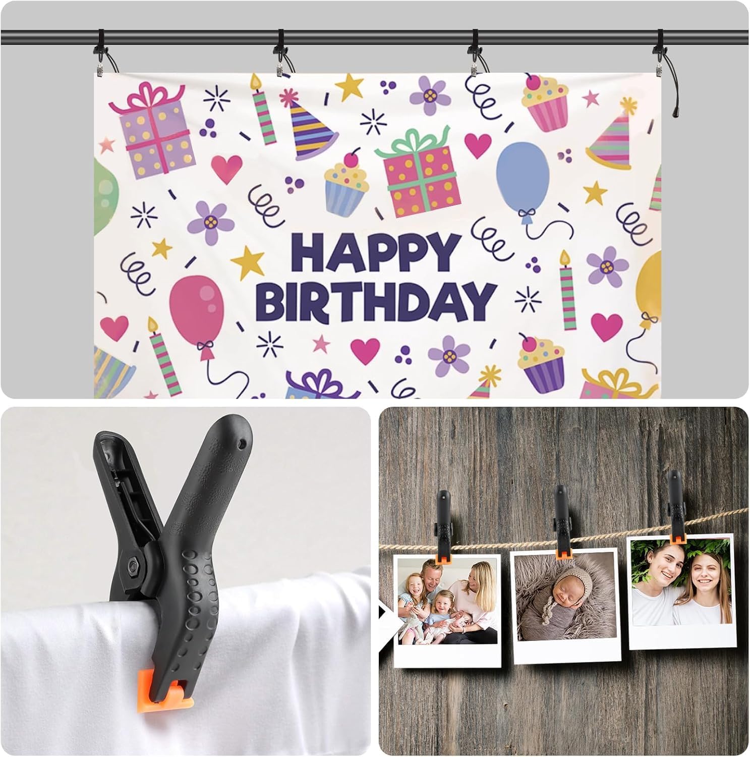 • 【6 X BACKDROP CLIPS】: The backdrop clip is made of quality elastic nylon, which is durable and strong. Length of the bottom clips is 34 cm, which can fit most kinds of crossbars and bottom stand, a rope is attached to the back of the clip, and there is a button on the rope that you can use to control the length of the rope