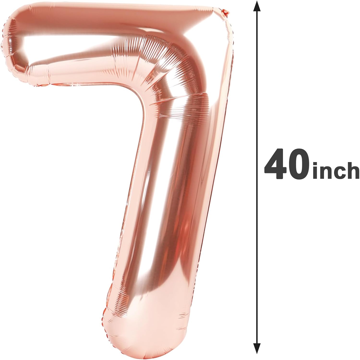 • 1.Make Party Charming with Rose Gold Number Balloon: You will receive an uninflated 40 inch 7 balloon number. Big number balloons are always the best statement of romance and surprise. Rose Gold balloon symbolize vitality exoticism, adding glamour to birthday parties. Bright metallic rose gold and huge size make 7 birthday balloon a highlight of special parties. Choose one or more numbers from 0-9 number balloon, and use 7 17 27 37 47 57 67 77 87 97 balloon numbers to create a lively party!