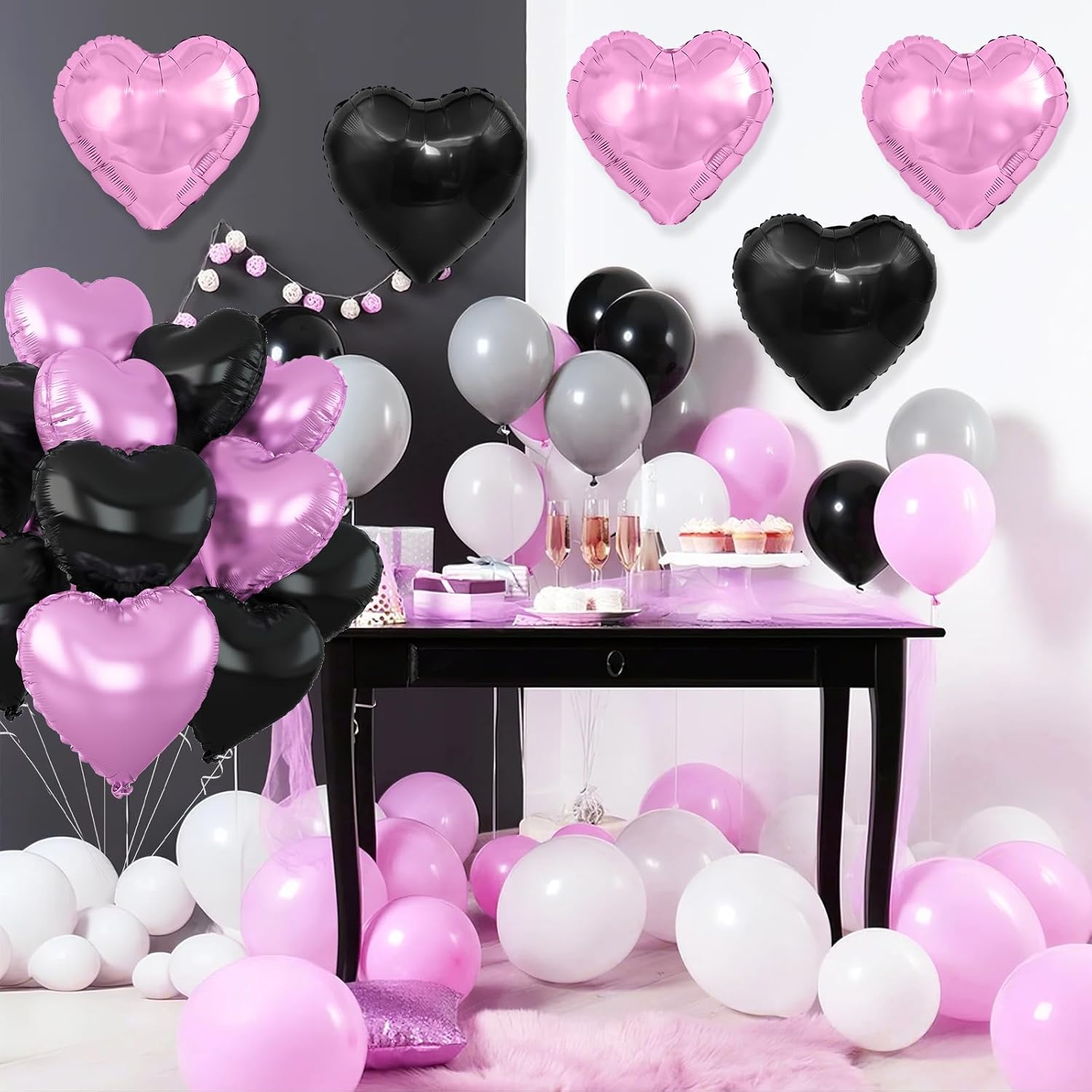 • 12PCS HEART BALLOONS:Package include 6pcs black heart foil balloons,6pcs cream purple heart foil balloons,1pc straw.Large enough to help you better decorate your party.