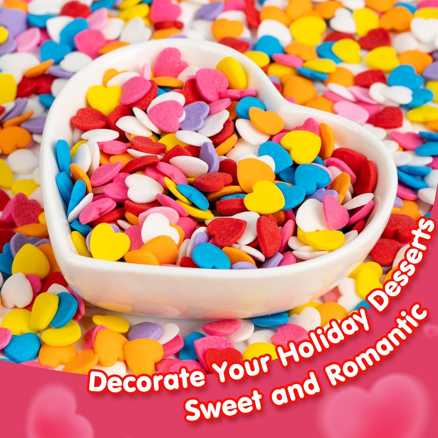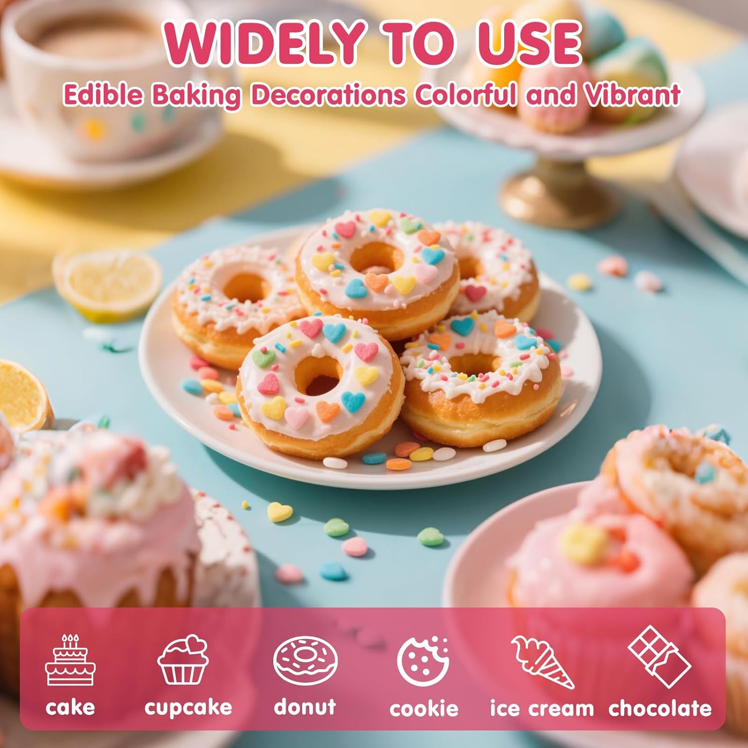 • Food-grade Sprinkles: The edible heart sprinkles are made with international food-grade ingredients and a pure, vegan-friendly formula Preservative Free,Crafted from natural cane sugar crystals and manufactured,Nut Free, Dairy Free, Chemical Free, Soy Free, Non-GMO. Produced using food-safe standards, the process does not come into contact with allergenic substances and uses Tamper-proof food label