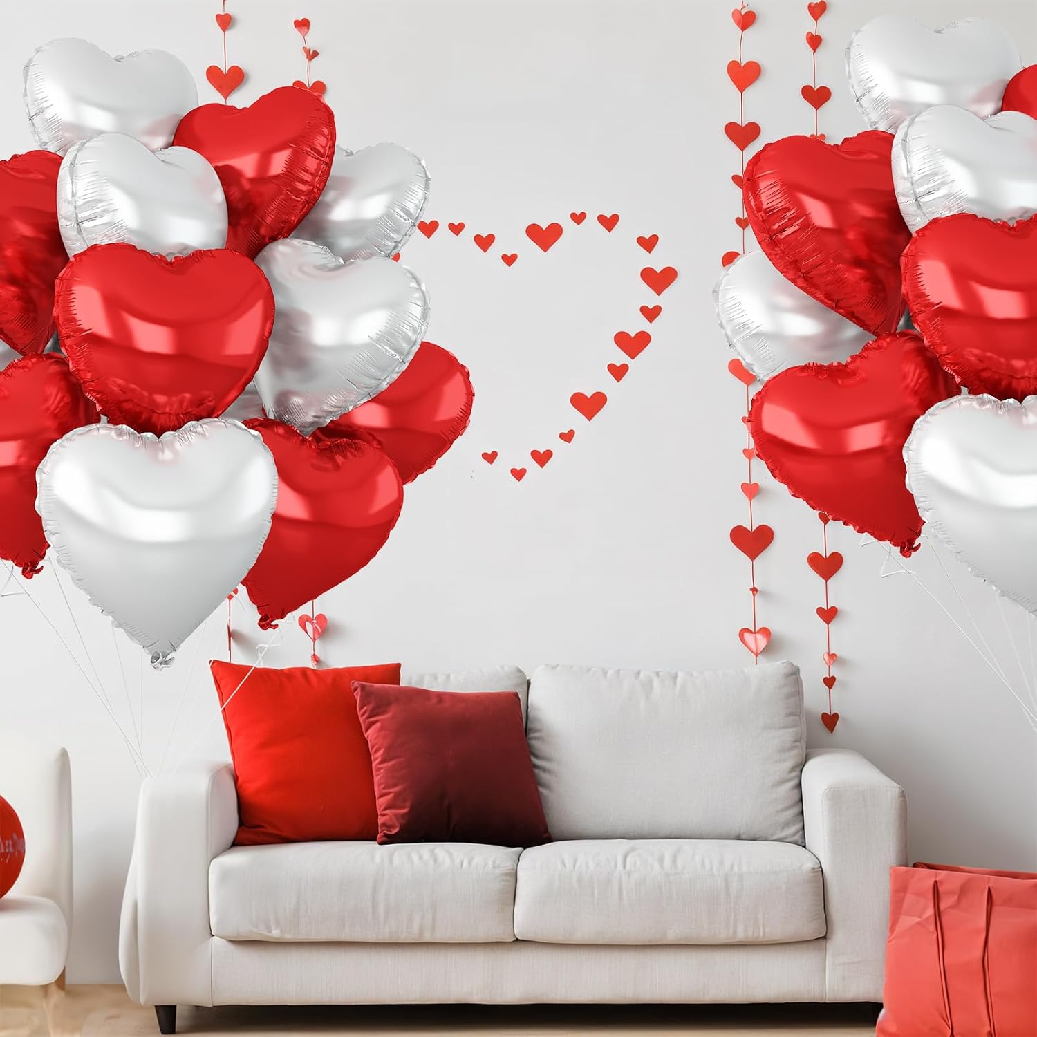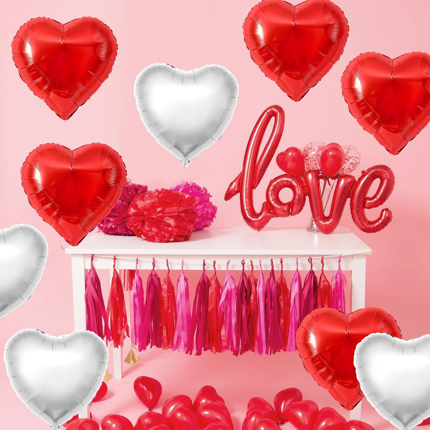 • 12PCS HEART BALLOONS:Package include 6pcs red heart foil balloons,6pcs silver heart foil balloons,1pc straw.Large enough to help you better decorate your party.