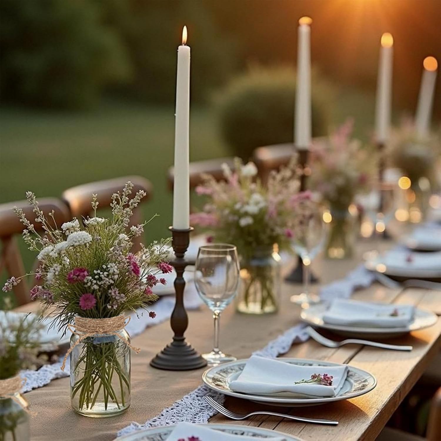• 🏺 Commercial-Grade Bulk Vases:12-pack vintage glass centerpiece vases designed for weddings, banquets, and catering businesses. Clear mason jars offer reusable rustic charm for floral arrangements or candlelit tables