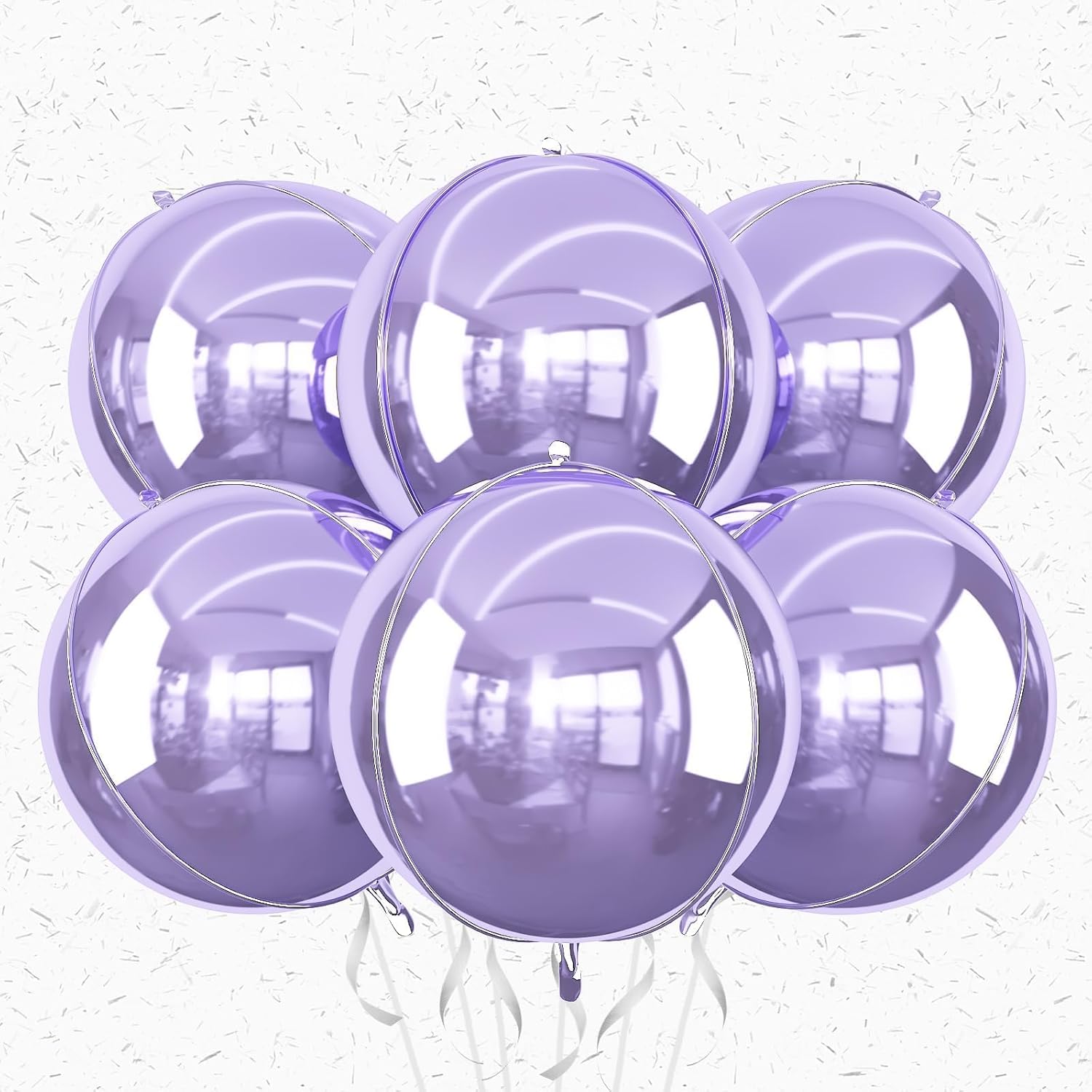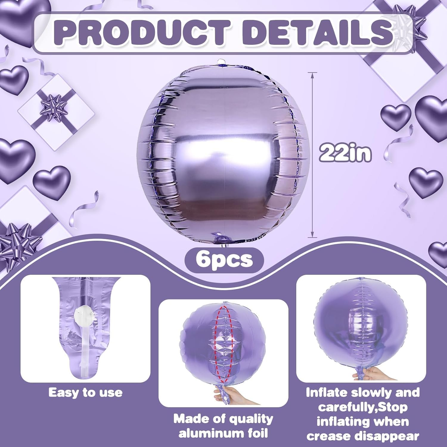 6Pcs Purple Round Foil Balloons,Giant 4D Round Ball Balloon,22 Inch Metallic Purple Balloons for Birthday Wedding Prom Party Decorations