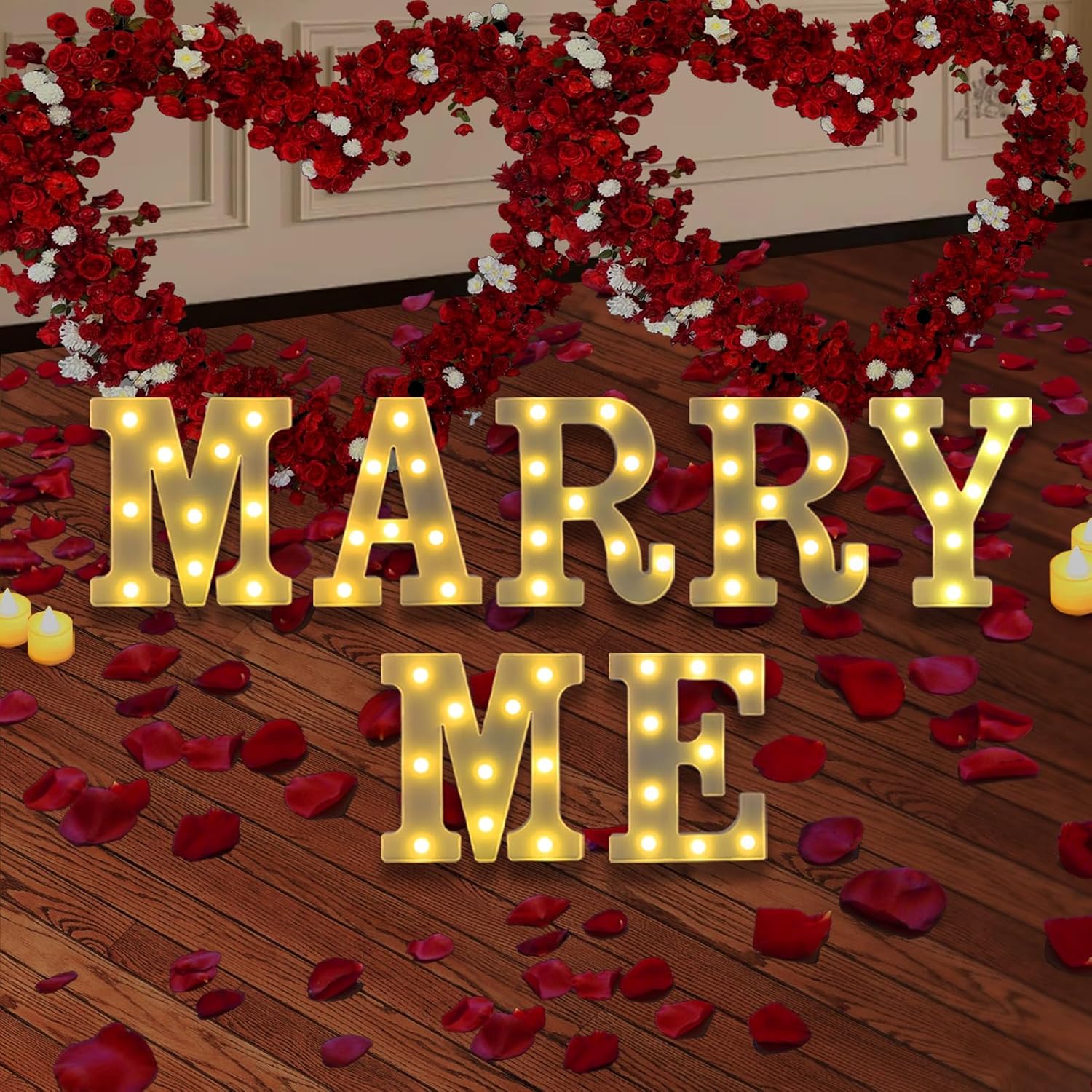 • ★【Light Up Your Love】Light up letter lights are great decorations, perfect for all kinds of scenes and memorable moments. Light up your proposal ceremony by spelling out “MARRY ME” with our letter lights, light up the wonderful moments, warm white light creates a cozy atmosphere and makes your love shine more!