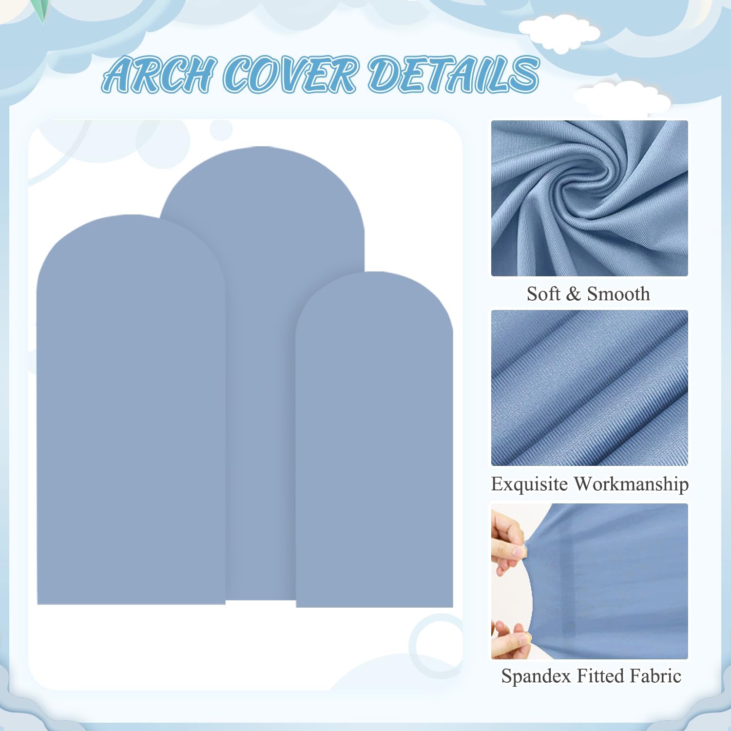 FOTSHARER Metal Arch Backdrop Stand and Cover Set 7.2FT 6.6FT 6FT Backdrop Arch Stand with Dusty Blue Wedding Arched Cover Set of 3 Background Arch Stand for Baby Shower Bridal Shower Event Decor