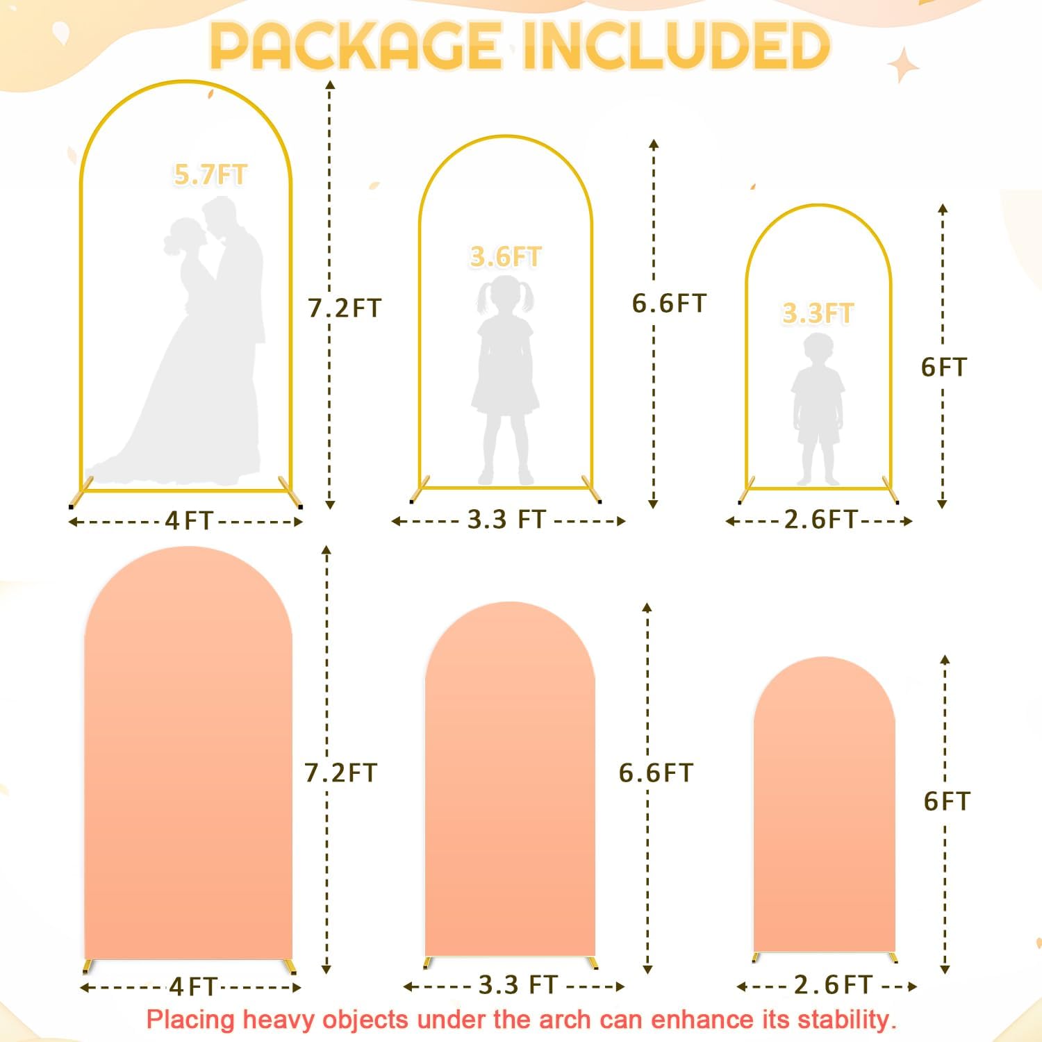 Metal Arch Backdrop Stand Set of 3 with Cover 7.2FT, 6.6FT, 6FT Wedding Arch Stand Arched Frame and Peach Arch Covers Stretchy Backdrop Spandex for Birthday Party Baby Shower Graduation Ceremony Decor