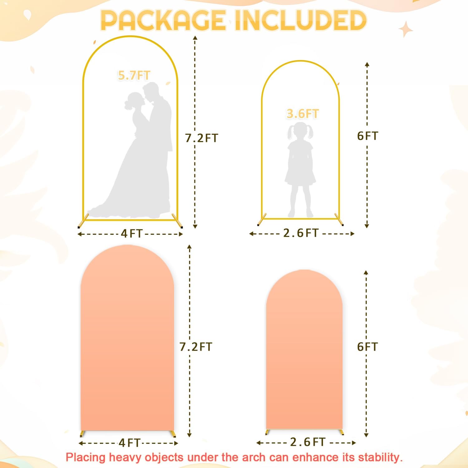 Wedding Arch Backdrop Stand and Peach Arch Cover Set of 2 (7.2FT, 6FT) Metal Backdrop Stand for Parties Spandex Arch Stand Cover for Birthday Bridal Baby Shower Graduation Balloon Arch Decorations