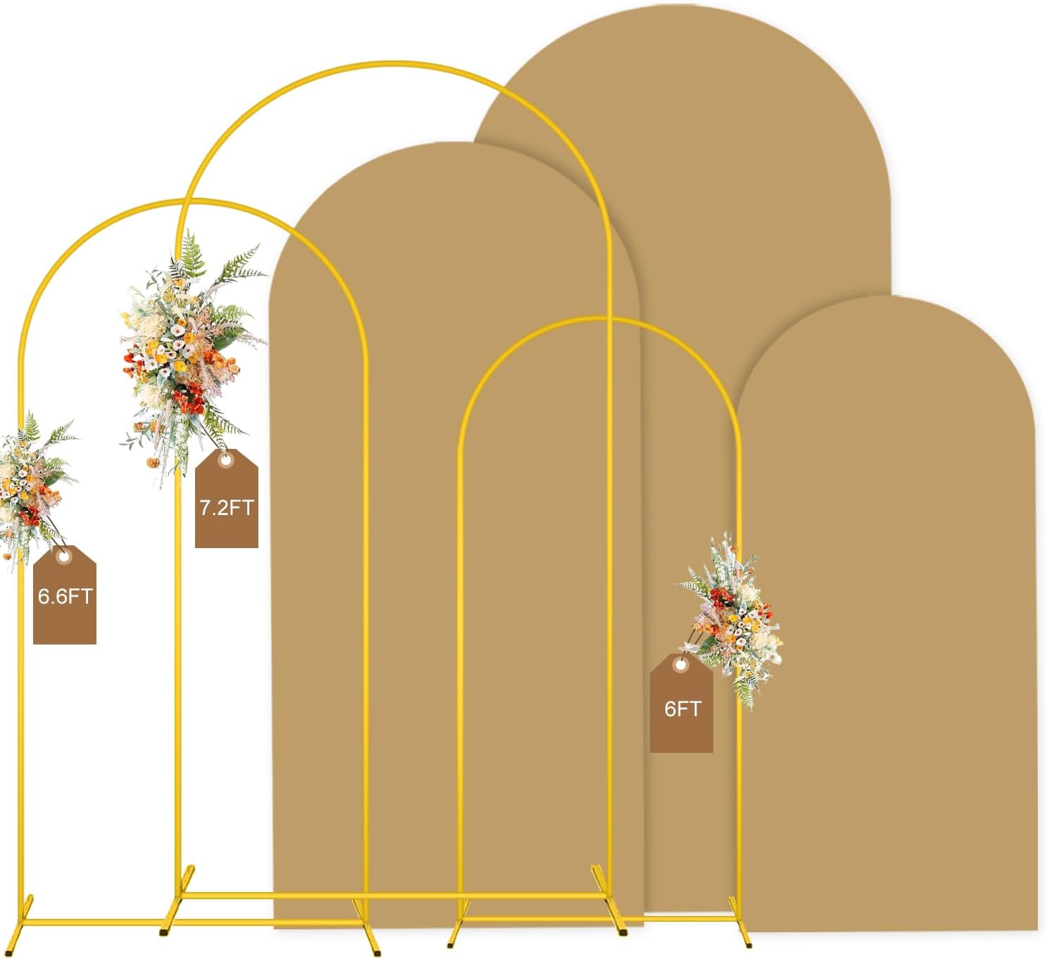 MODFUNS Arch Backdrop Stand and Cover Set 6&6.6&7.2ft Khaki Arch Backdrop Covers Set of 3 Gold Arch Frame Spandex Arched Covers for Party Birthday Banquet Wedding Ceremony Decoration