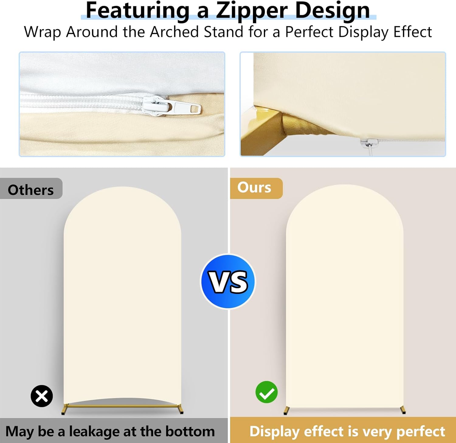 • Thick Spandex Arch Cover: This 7.2 ft white and light beige arch backdrop cover is made of stretchy spandex, not see through, 2-sided and zipper design for seamless decoration, perfectly display your party decoration on either side ⚠One Arch Cover with Double Color