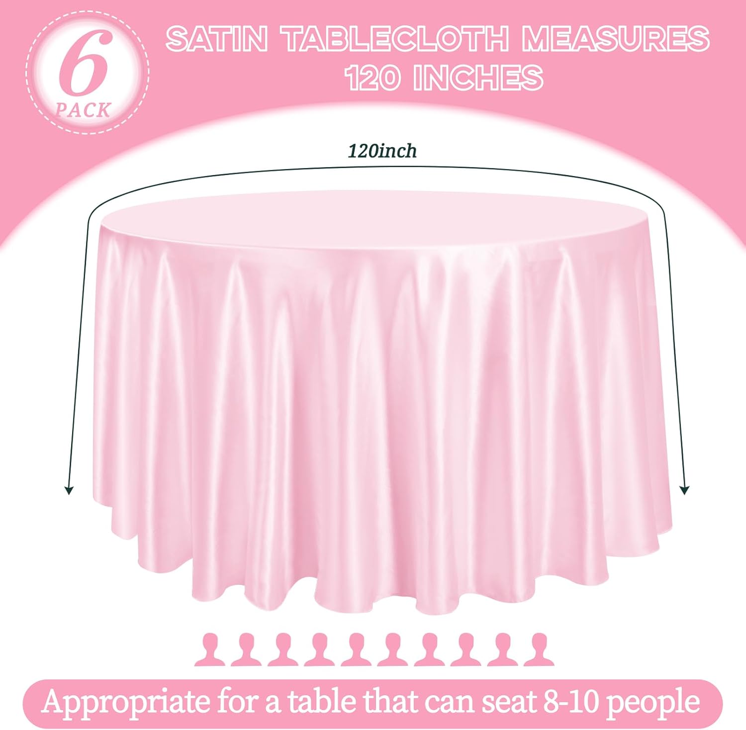 fani 6 Pack 120 Inch Light Pink Satin Tablecloth - Silky Round Tablecloth Overlay Smooth Fabric Table Cover, Bright Table Decoration for Wedding Party Banquet Events Restaurant Kitchen Dining