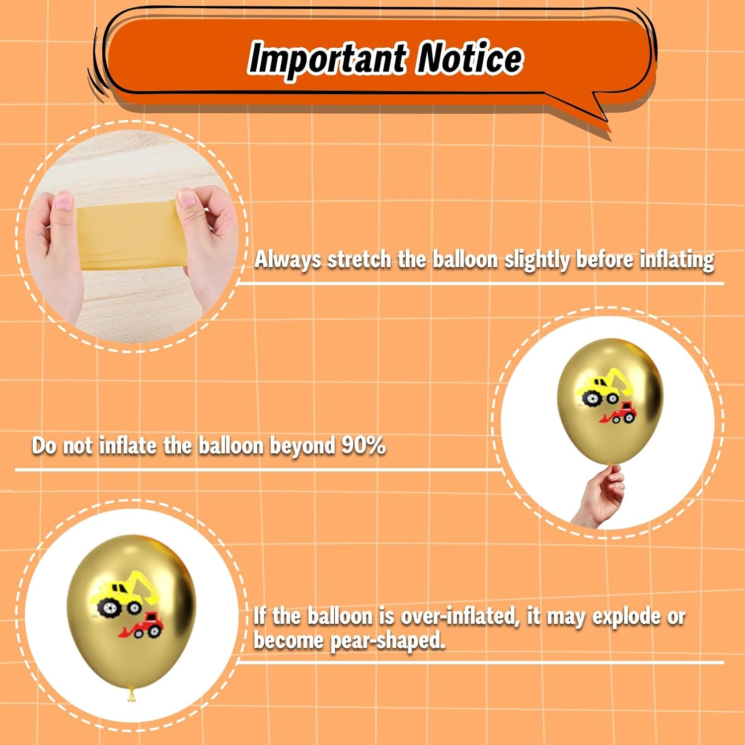 • 【Friendly Reminders】Keep yellow and black balloons away from sharp objects, rough surfaces, and direct sunlight to prevent damage. To ensure the balloons last, store unused balloons in a cool, dry place. We are always committed to providing outstanding balloons and party supplies. If you encounter any problems while using our construction birthday party supplies, our professional customer service team will be available to assist you at any time.