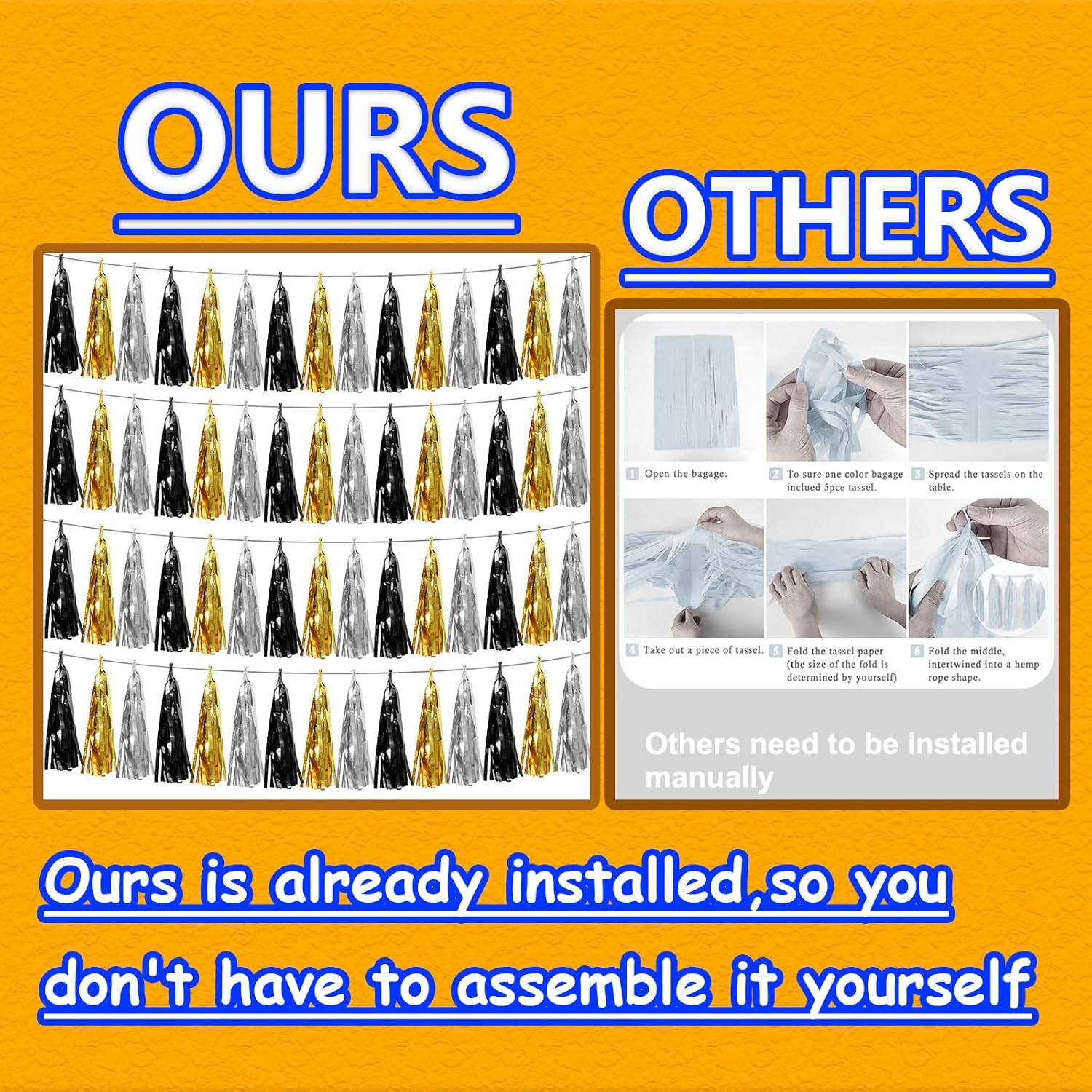 • 【Multiple Colors】Pair with metallic foil fringe garland of different colors to achieve the color combination you want. Show off your creativity by pairing this gold foil wall hanging banner with other garland in different colors to fulfill your dream of creating the perfect party scene.