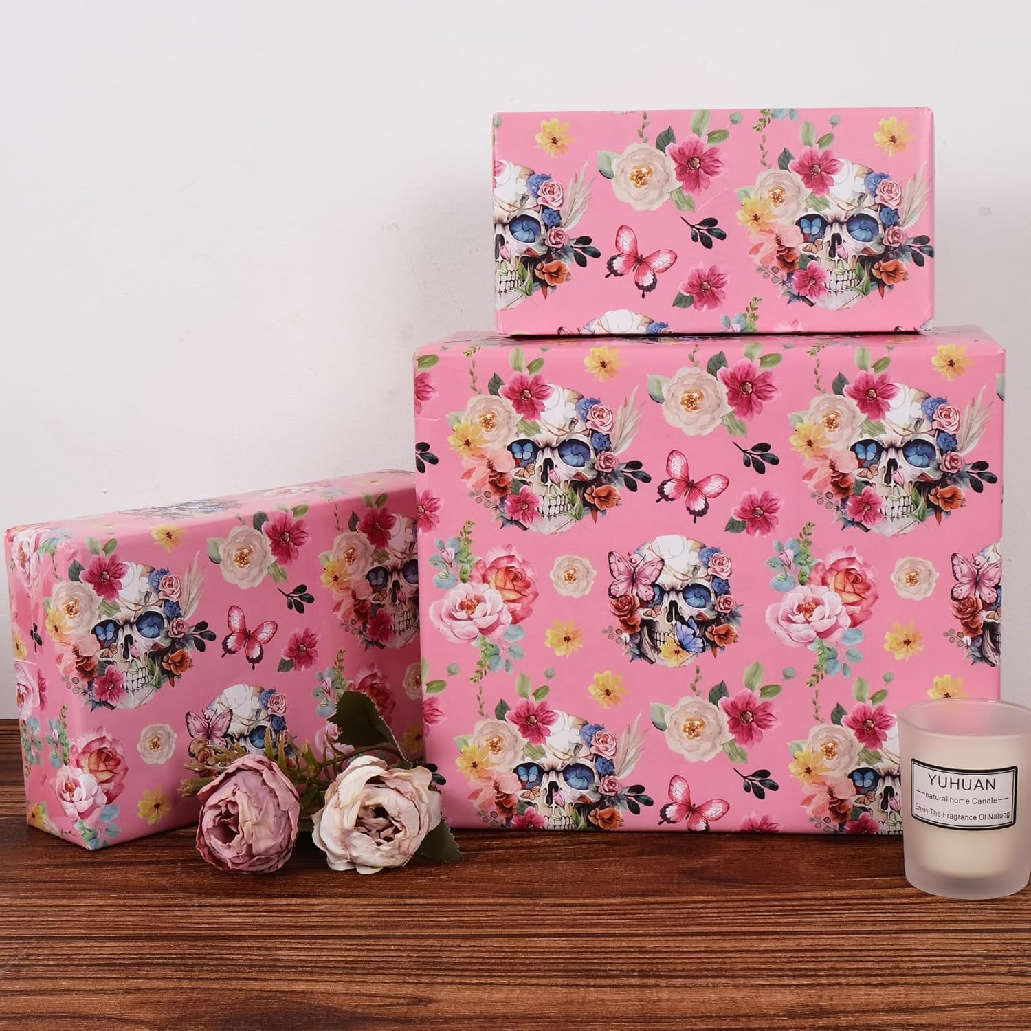 • Unique & Funny Skull Flower Design - Beautiful and feminine designs, different lovely flowers are printed on thick wrapping paper, which make it ideal for creating a wonderful gift presentation that leaves a lasting impression