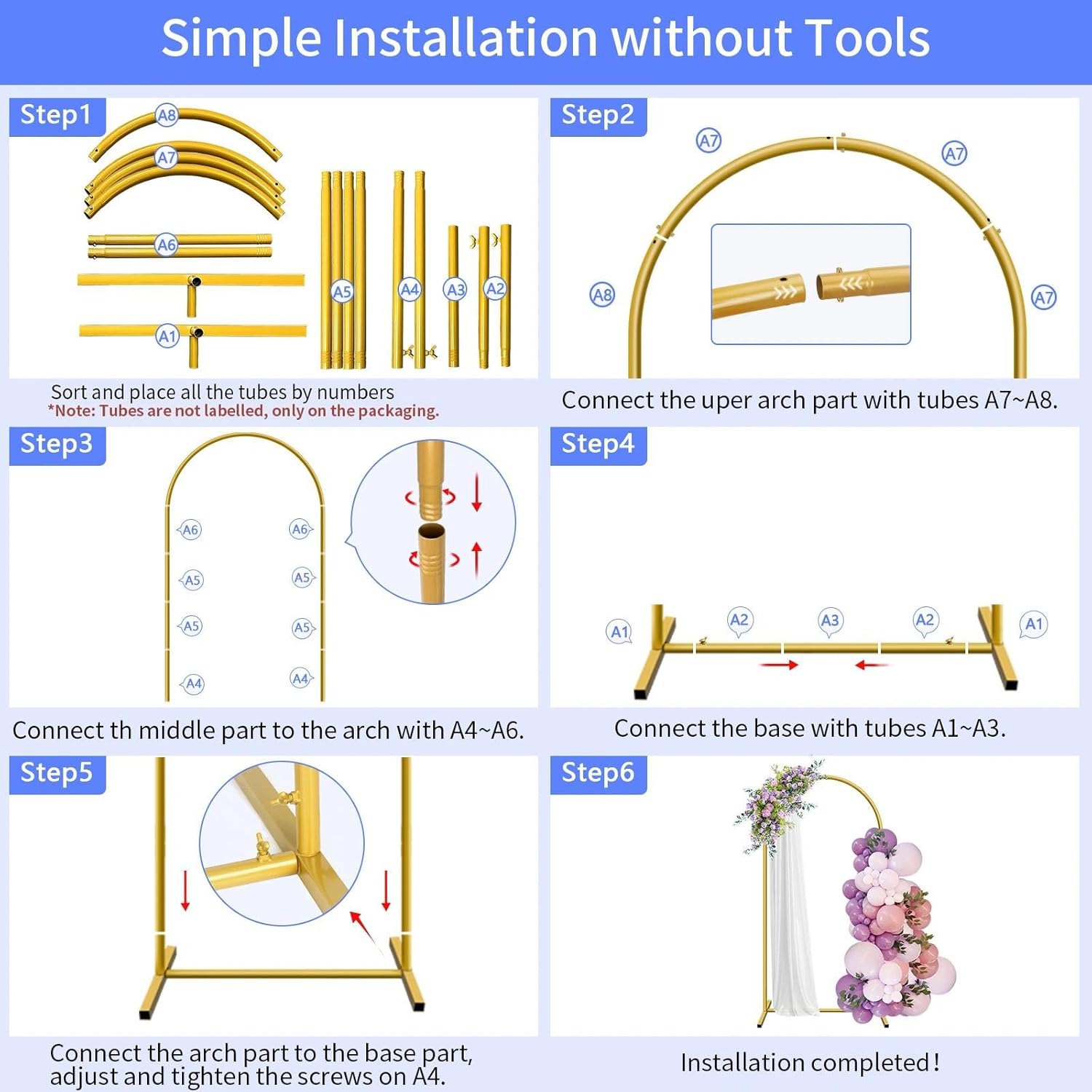 • Decorative Possibilities: The gold arch stand can be decorated with balloons, floral backdrops, greenery, tulle, fabric, LED lights and garlands and more, perfect for creating balloon arches, wedding arch stand, background arch stand, photo backdrop arch