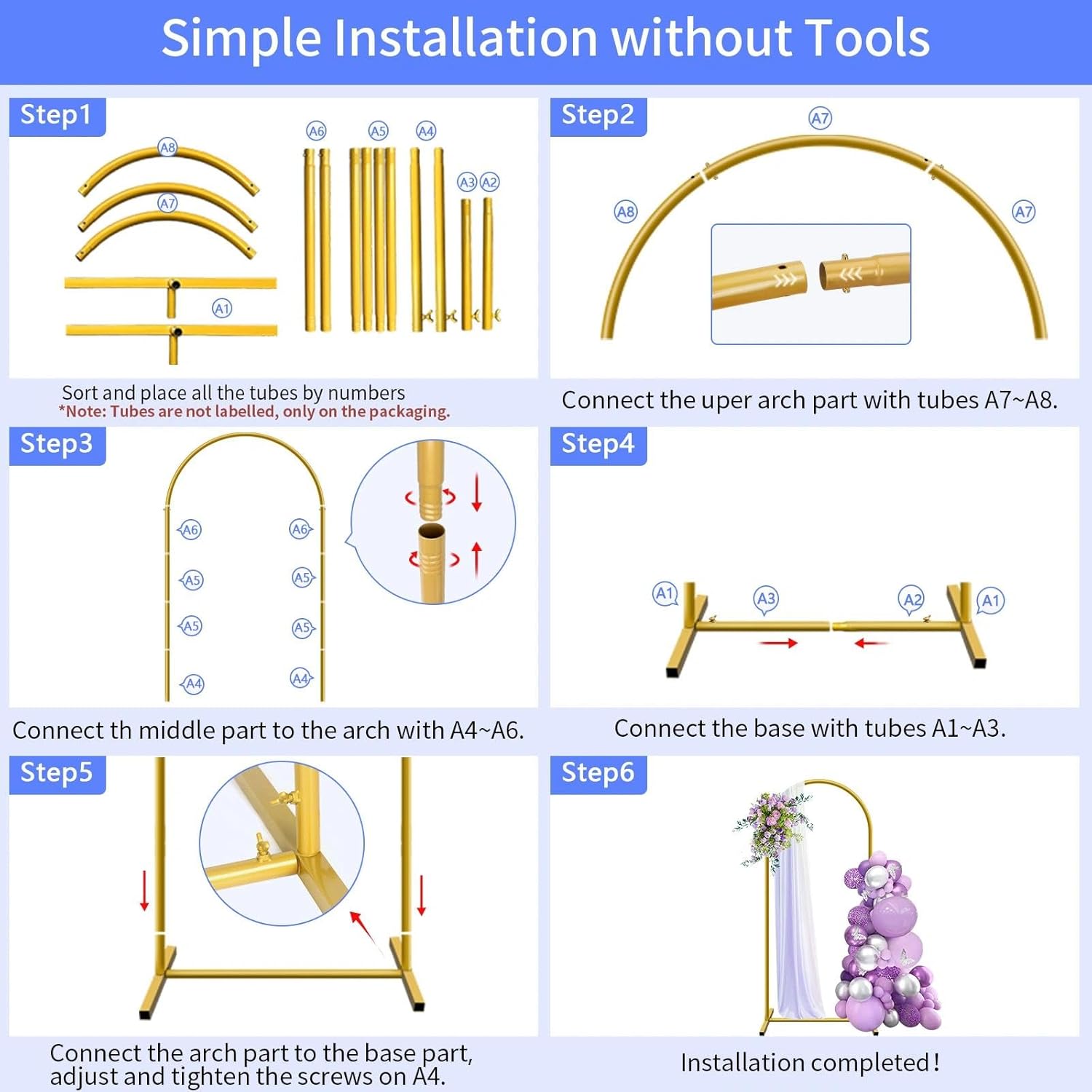 • Decorative Possibilities: The gold arch stand can be decorated with balloons, floral backdrops, greenery, tulle, fabric, LED lights and garlands and more, perfect for creating balloon arches, wedding arch stand, background arch stand, photo backdrop arch
