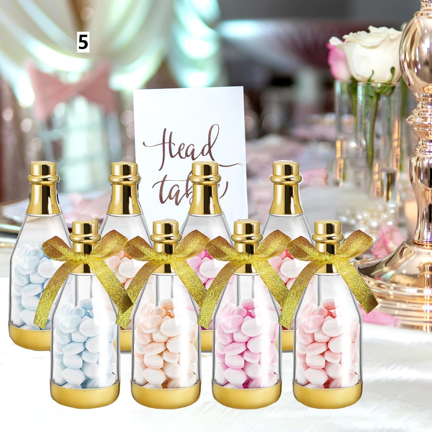 Frcctre 48 Pack Metallic Golden Mini Champagne Bottles, Plastic Champagne Candy Bottles Candy Jar Party Favor Containers for Wedding Birthday Party Bridal Shower Baby Shower