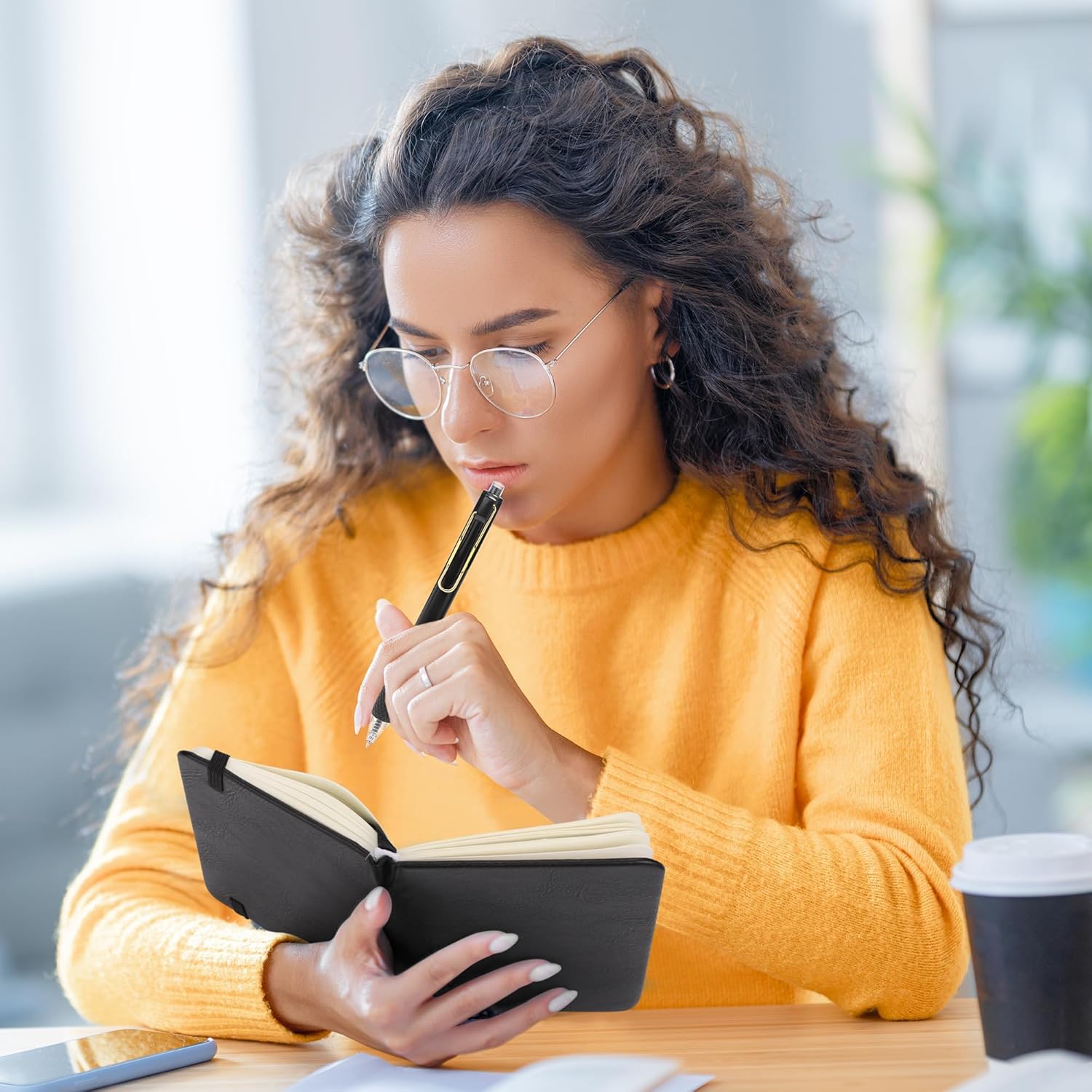 • Premium leather and paper: our small notebooks are made with smooth 80 gsm thick paper that resists ghosting and bleed-through, making them ideal for use with most pens, pencils, and markers; the notebook’s durable PU leather cover is water-resistant and easy to clean, maintaining the notebook’s structure and flat pages; paired with a custom 0.5mm-tip ballpoint pen for smooth, leak-free writing, this hardcover notebook is good for journaling and sketching