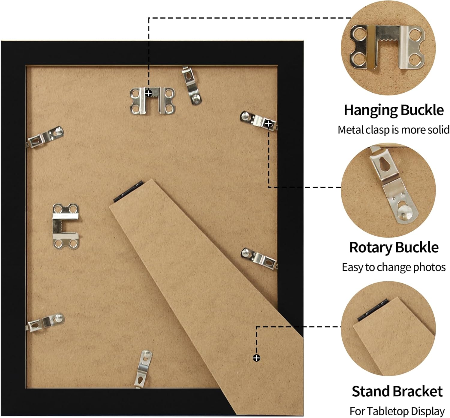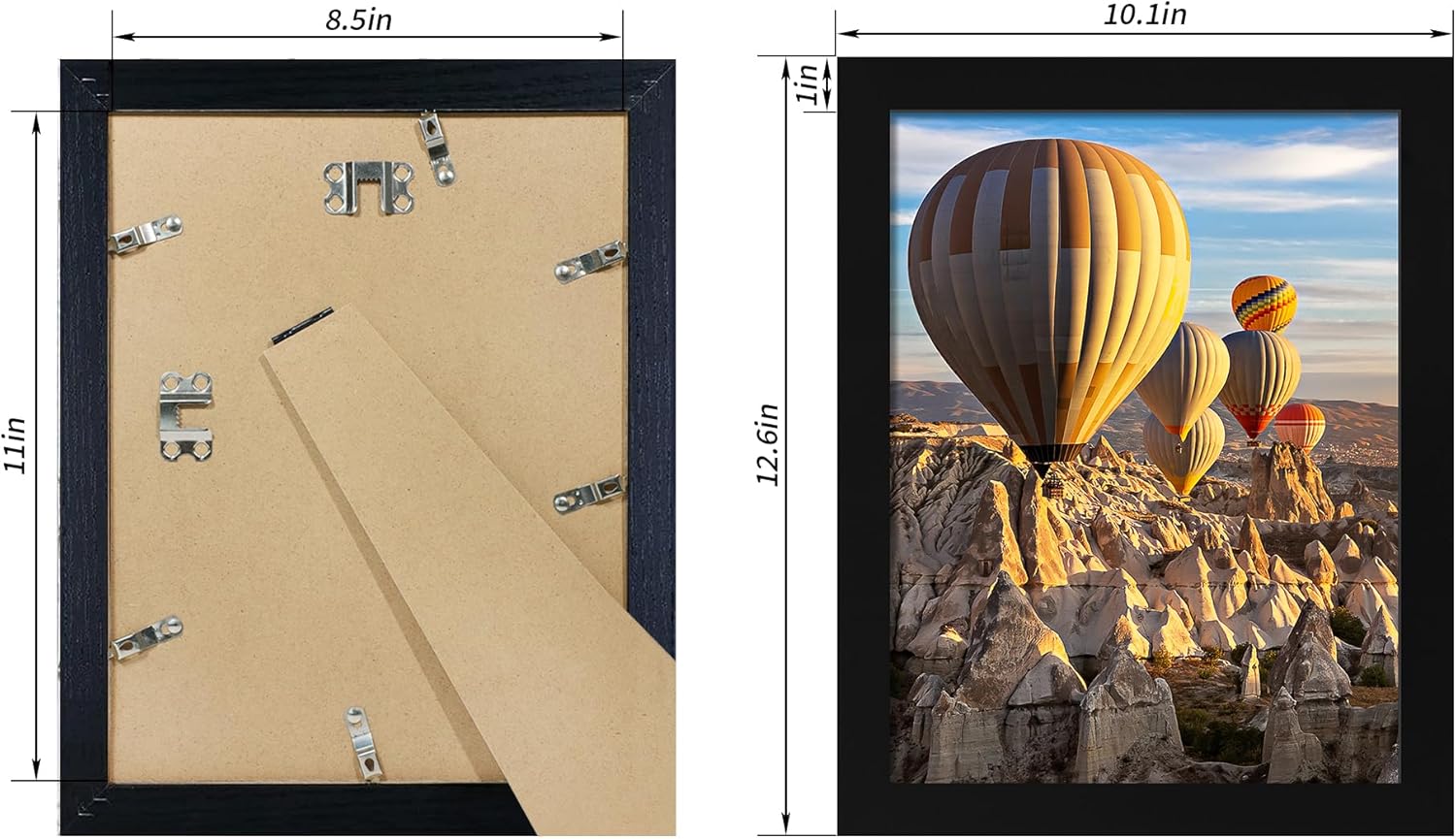 • Multi Frames Collage Set: Includes 4 frames in the same size. Perfectly fits 8.5x11 inch pictures without mat. The frame opening display size is 0.5 inches smaller than the photo size for secure mounting.