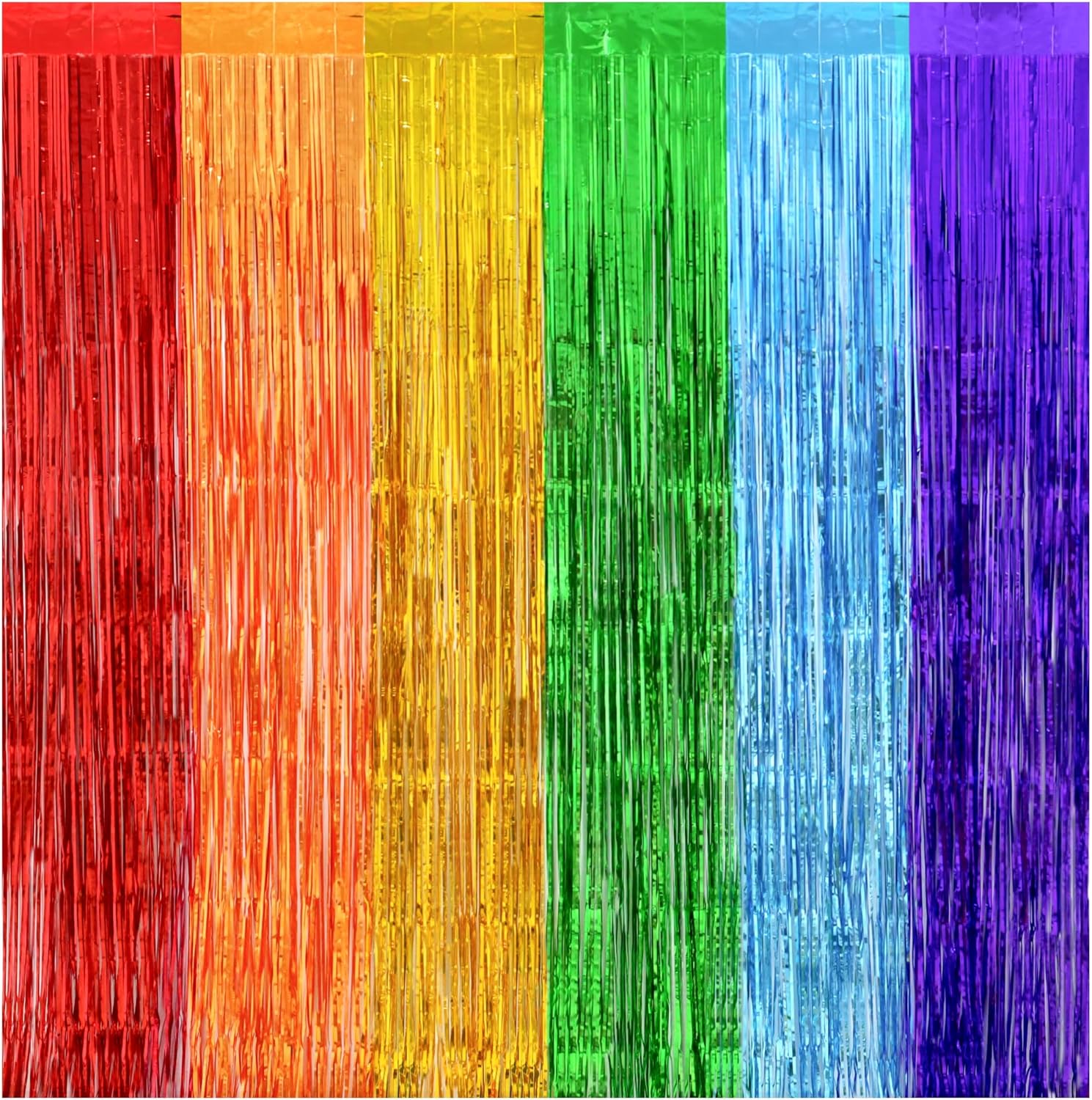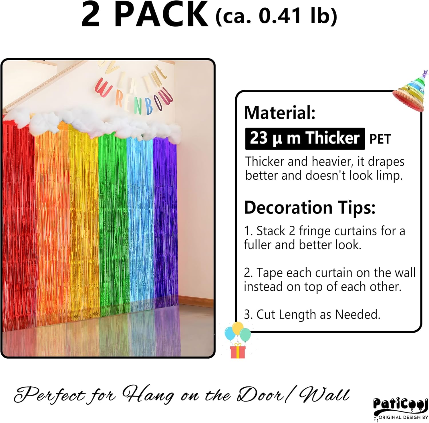 Pride Party Decorations - Rainbow Streamers Thicken 2 Pack 3.2 x 8.2 FT - Rainbow Tinsel Foil Fringe Curtains, Photo Booth Props Backdrops for Birthday, Fiesta, Mexican, Pride, Baby Shower