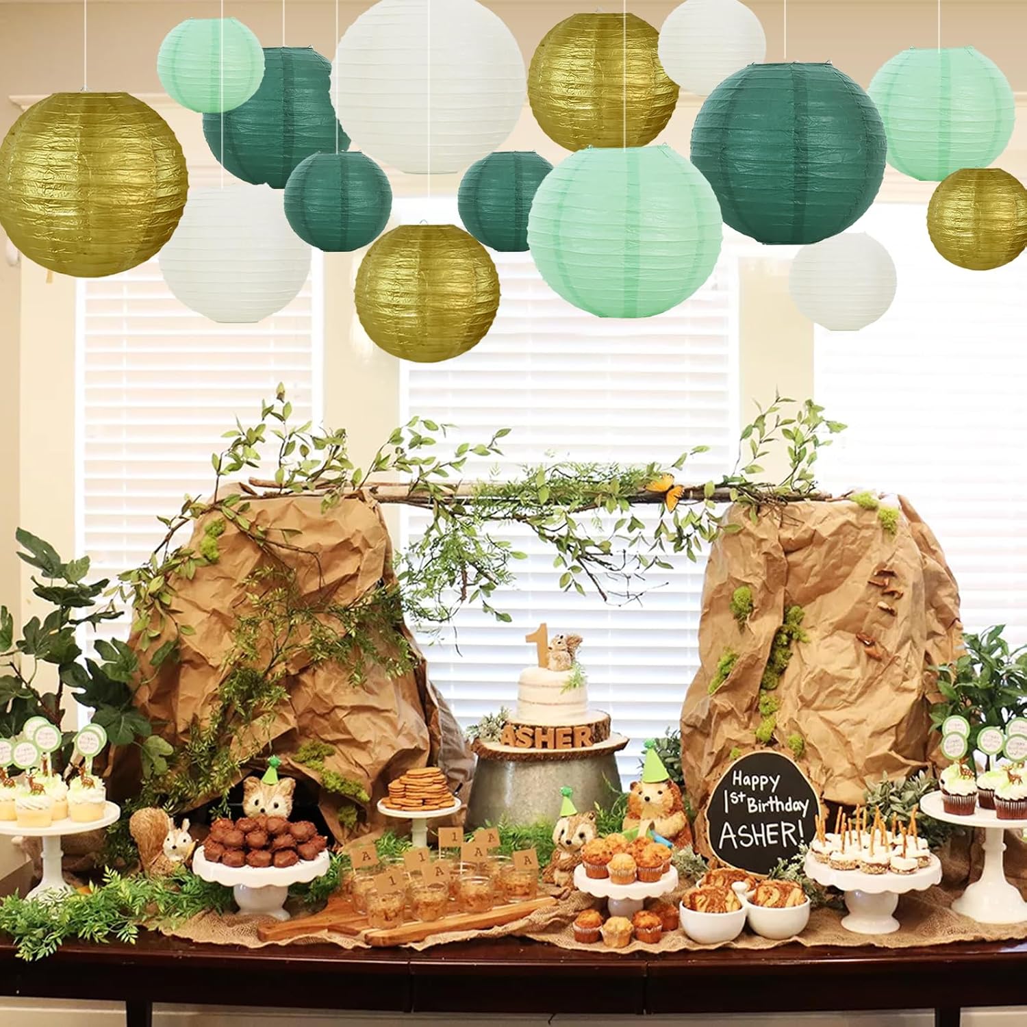 • Included Components : Paper lanterns (6 inch, 8 inch, 10 inch), sage green, forest green, gold, white (10 pieces)