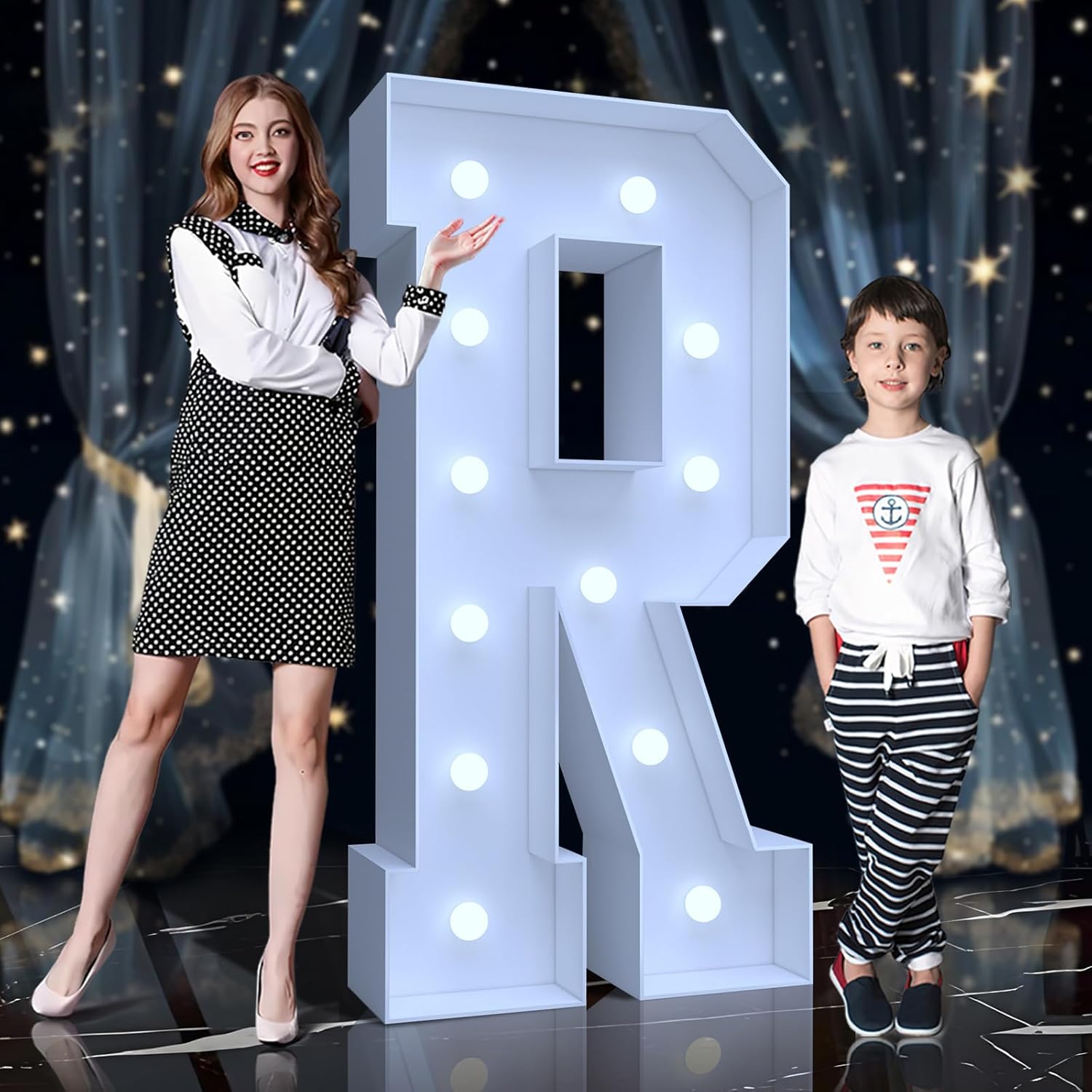 4FT Marquee Light Up Letters R – Cool White LED, Easy to Assemble Foam Board with Back Support, Large Marquee Light Up Letters for Birthday, Wedding, Party, Anniversary, Baby Shower Decor