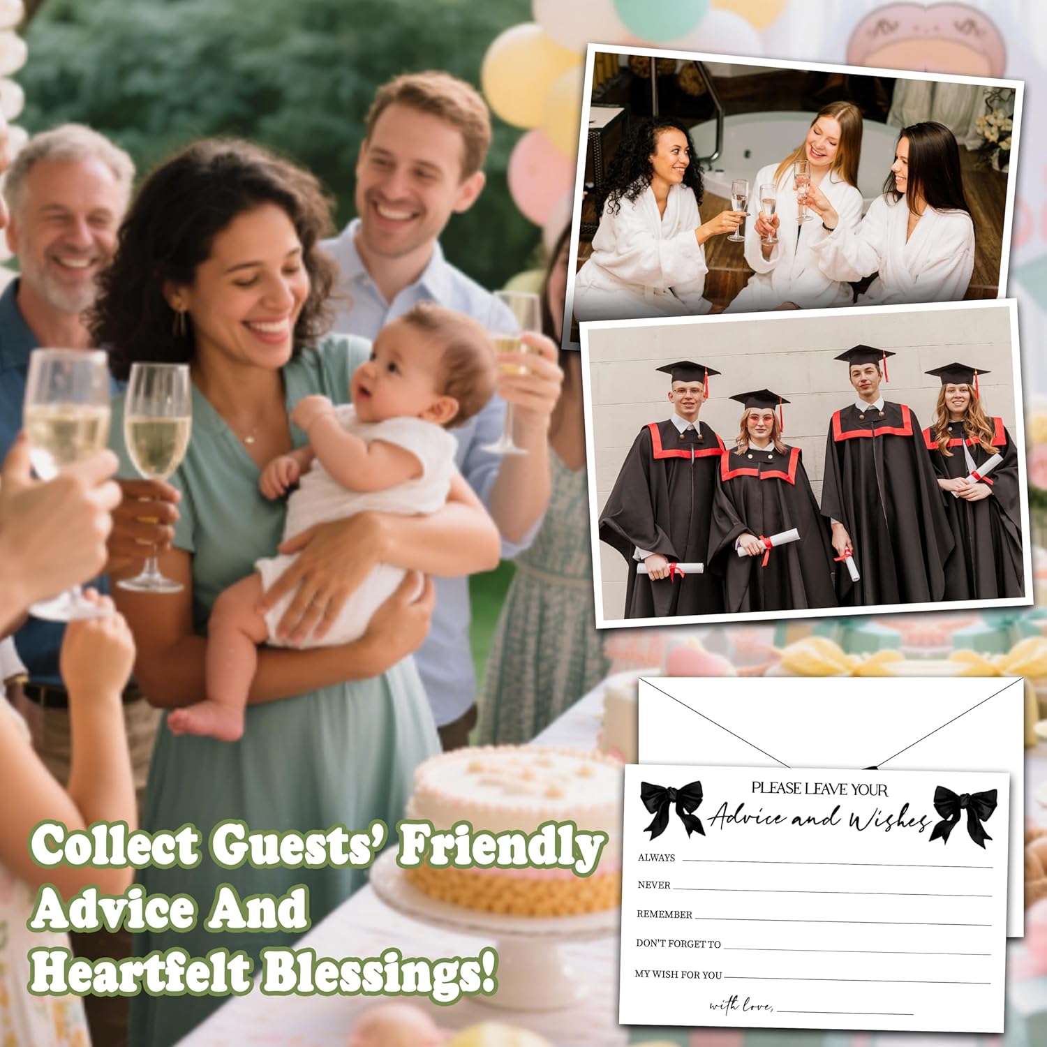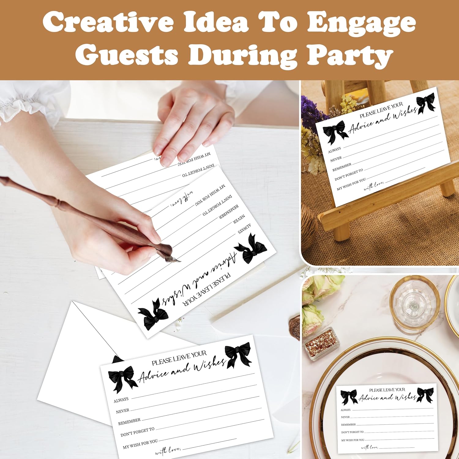 Advice And Wishes Cards (25pcs), Black Bow Advice Cards For Mr And Mrs, Bride And Groom, New Parents, Bridal Shower, Baby Shower, Engagement, Wedding, Bachelorette Party Games Decor -A12