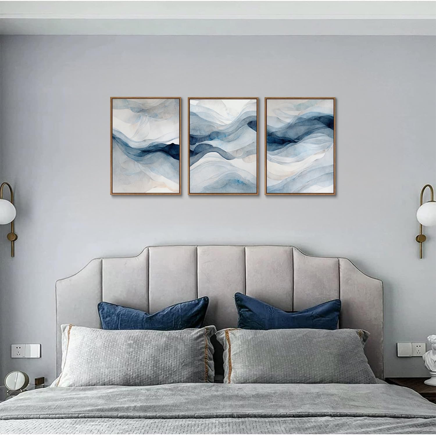 • Navy Blue Modern Wall Art: The navy blue tones in these artworks create a serene and sophisticated atmosphere. Ideal for those looking to infuse a sense of calm and style into their living spaces.