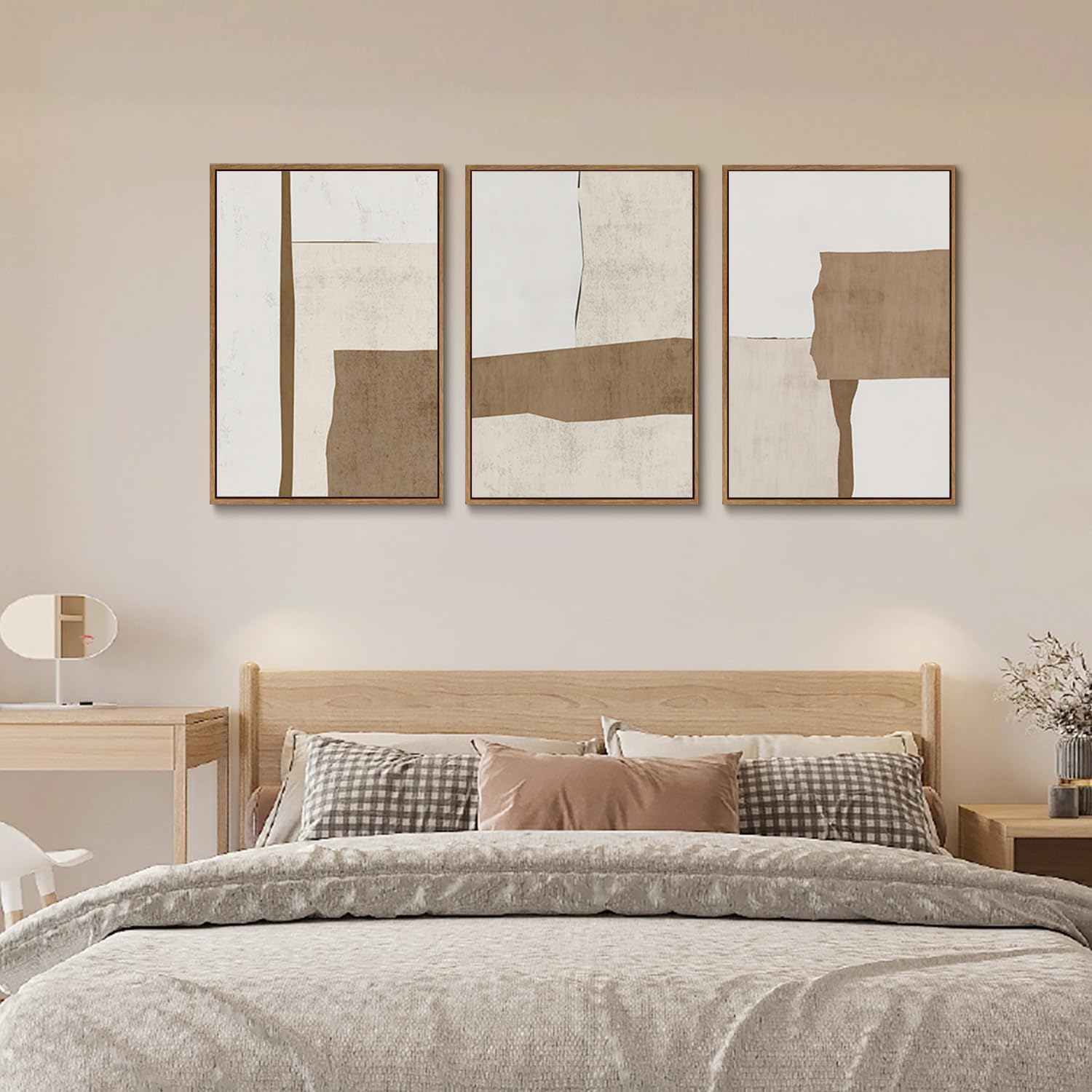 myusuar 3 Piece Large Modern Abstract Canvas Framed Wall Art For Living Room, Brown And Beige Block Minimalist Wall Art Decor Posters Prints For Bedroom Office, 16x24in