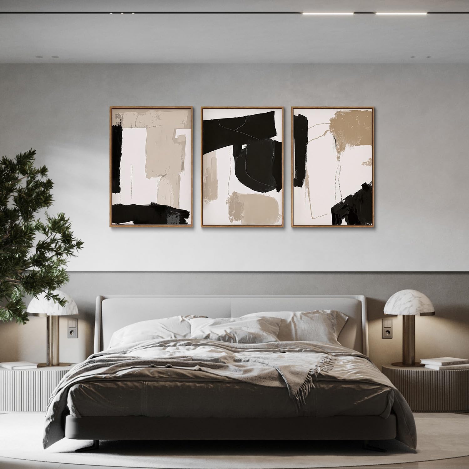 myusuar 3 Piece Large Modern Abstract Canvas Framed Wall Art For Living Room, Black And Beige Blocks Minimalist Wall Art Decor Posters Prints For Bedroom Office, 16x24in