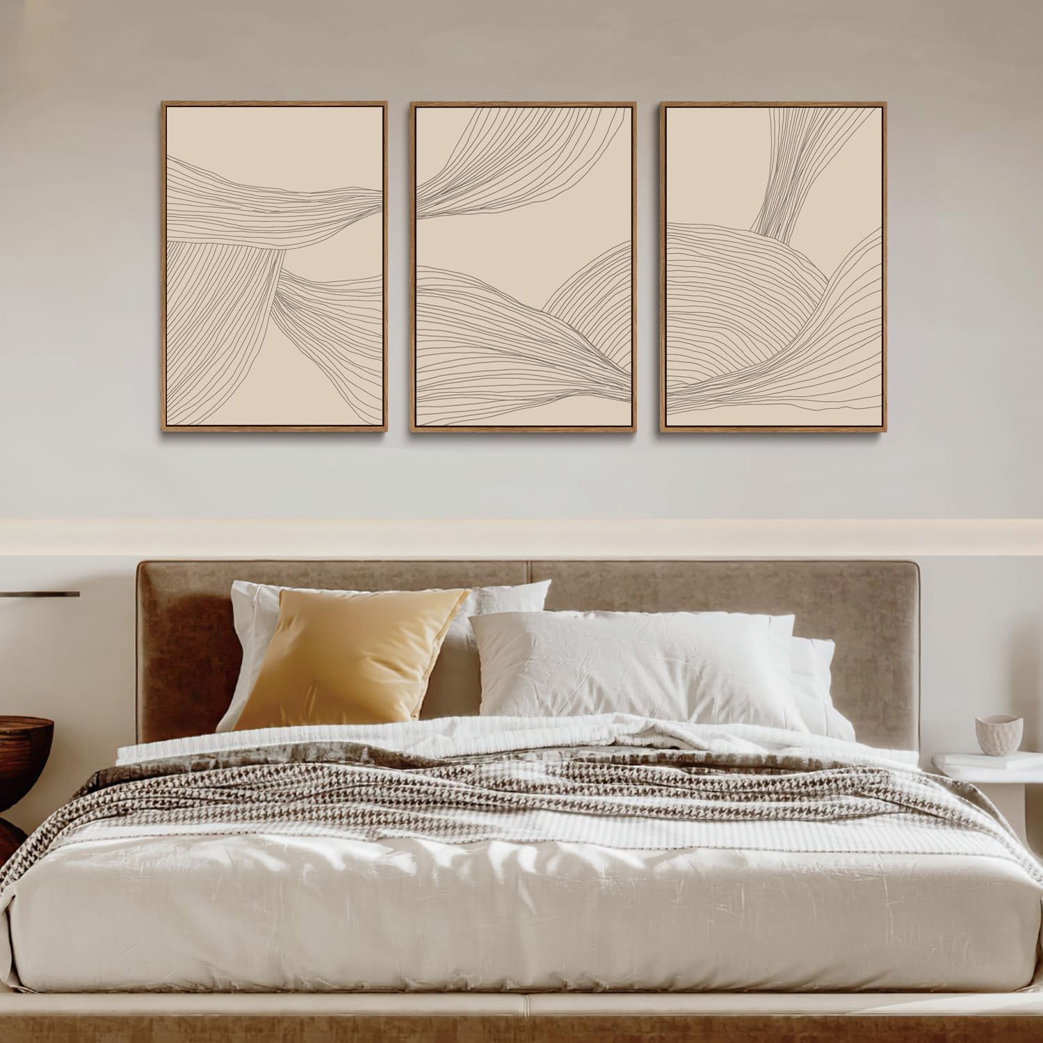 myusuar 3 Piece Large Modern Abstract Canvas Framed Wall Art For Living Room, Beige Minimalist Wall Art Decor Posters Prints For Bedroom Office, 12x16in