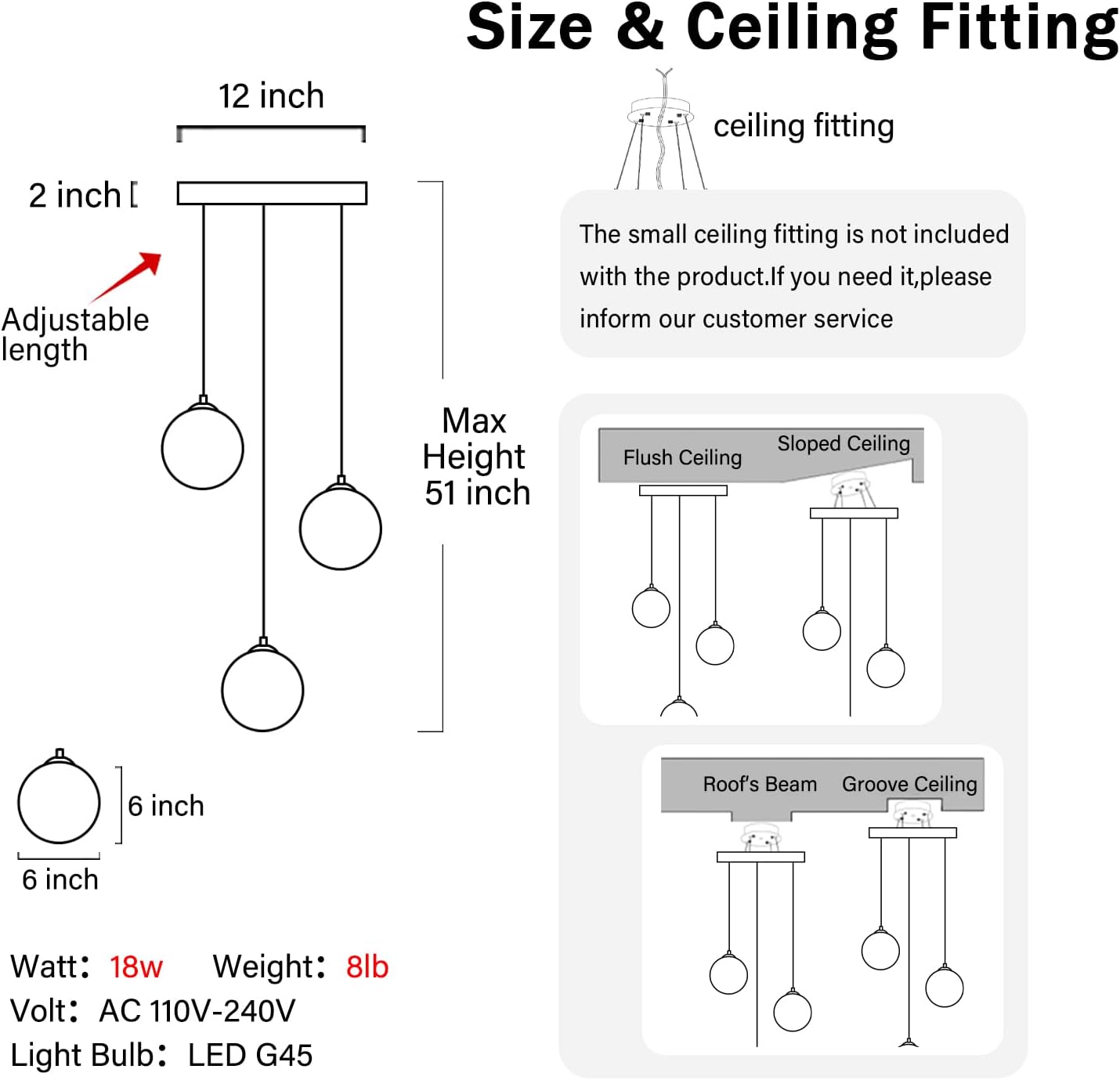 • 【Modern LED Pendant Lighting Installation】Please carefully read the size drawing and choose the suitable size for your home. The installation is simple. After installing the top panel on the ceiling, install the glass. Please let us know if you have any questions