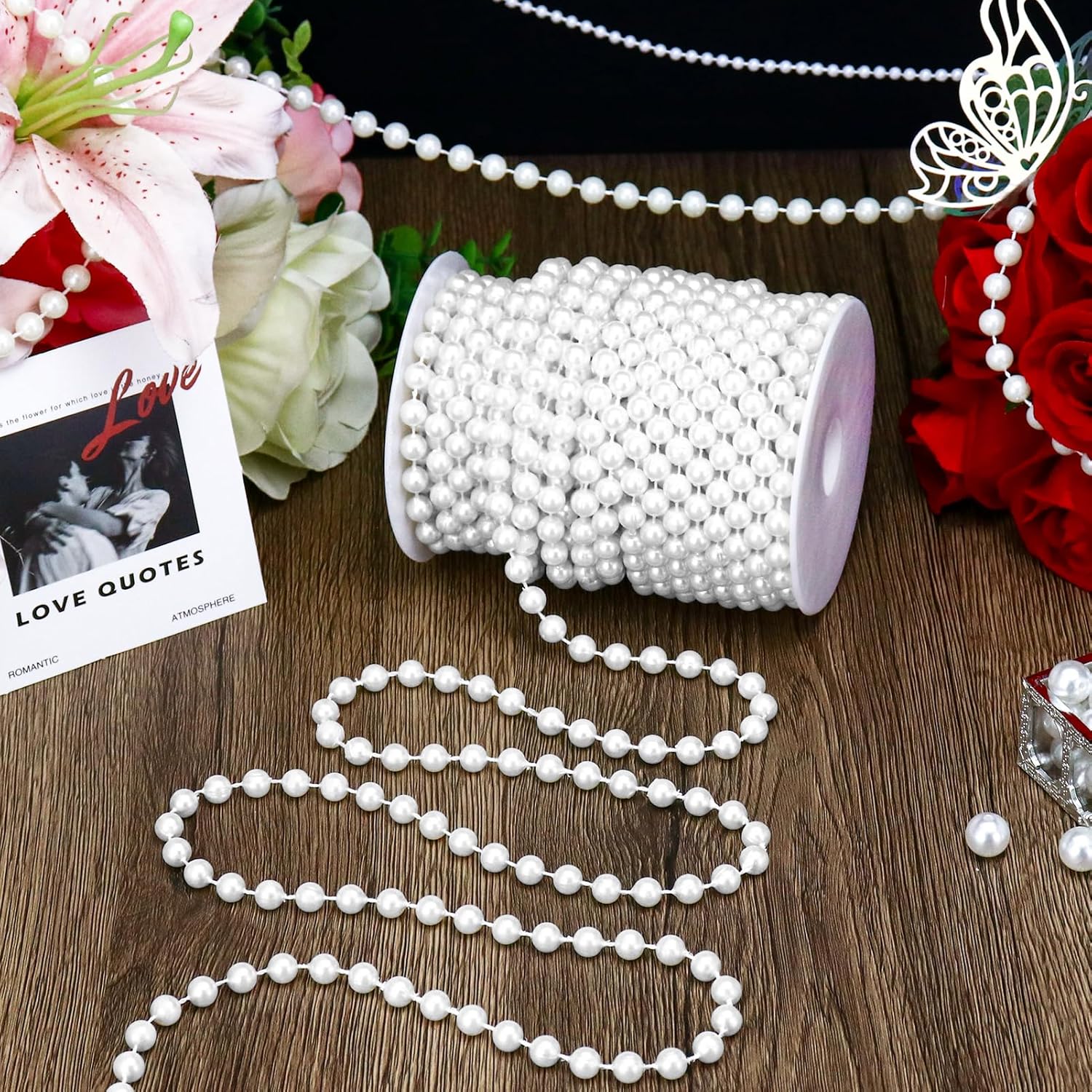 • You Will Receive a roll of faux pearl garland strings, totally 59 feet (18 meters) in length, the round pearl beads is 8mm in diameter