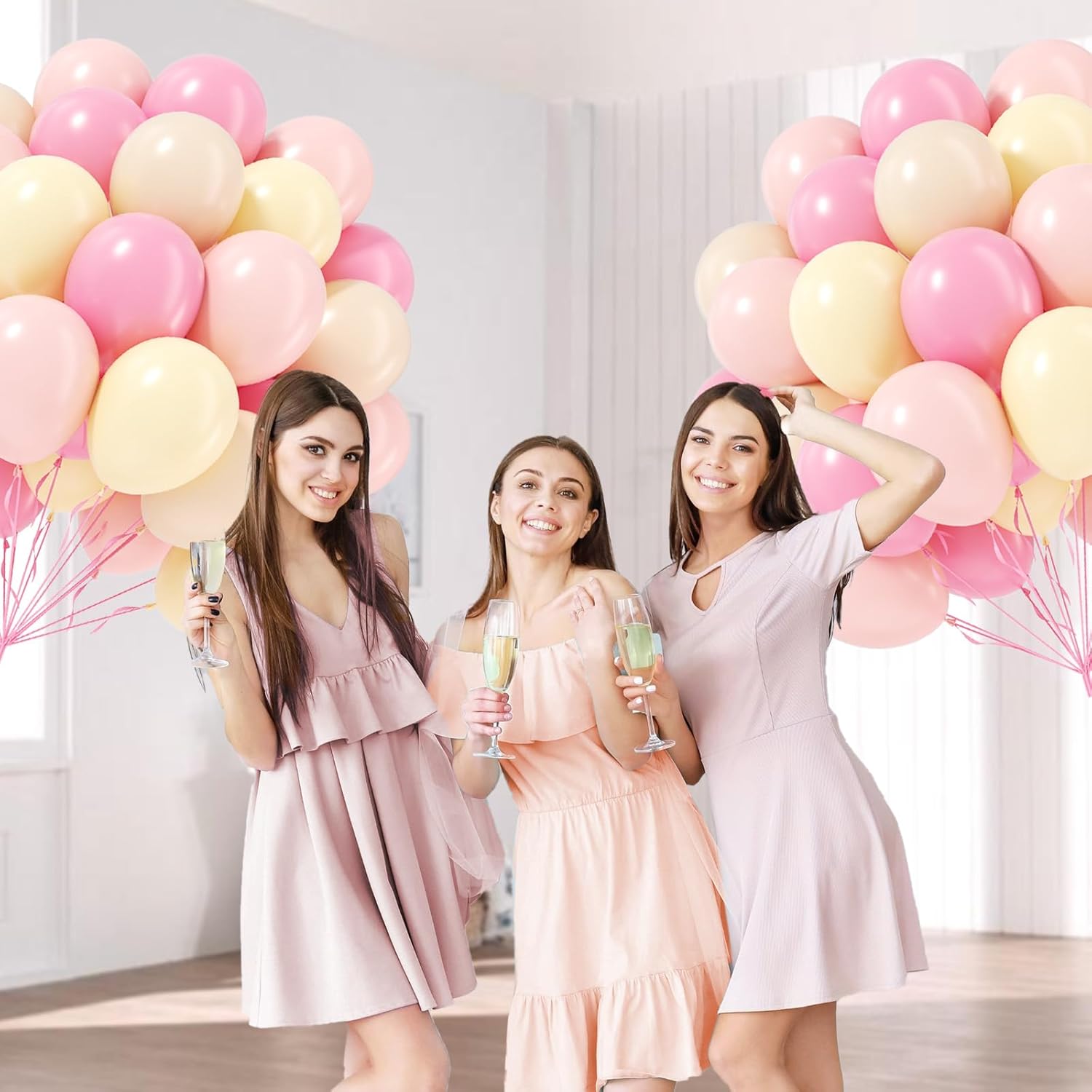 • Great Balloons: The pastel yellow and pink balloons are made of great latex, which is thick and not easy to pop. They can be filled with air or helium, lasting a long time when properly inflated. To ensure the good experience, inflate quickly with a balloon pump and avoid overinflating to maintain their shape