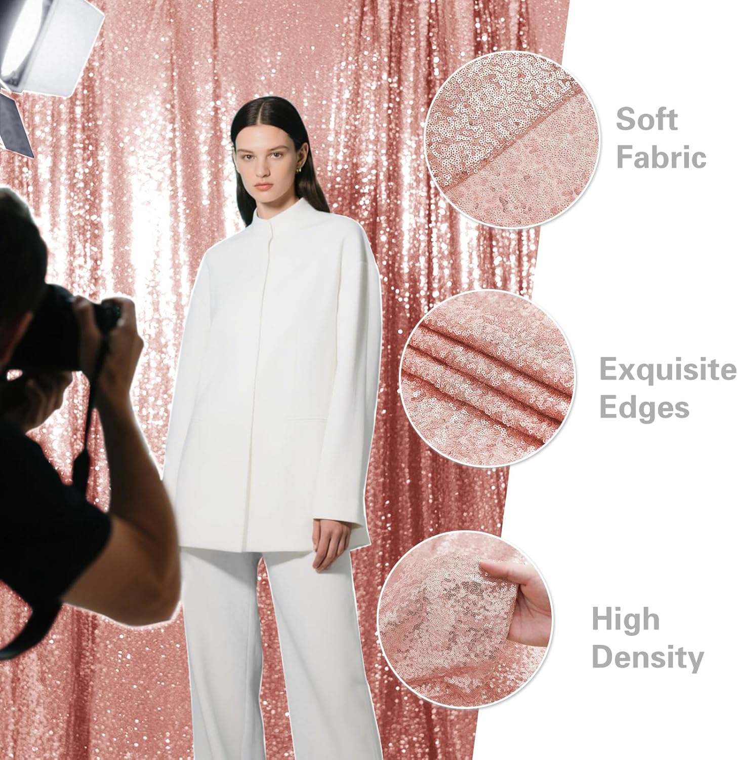 Rose Gold Sequin Backdrop Curtain 2 Pieces 2FTx8FT Glitter Photography Backdrop for Party Wedding Birthday Christmas Decorations