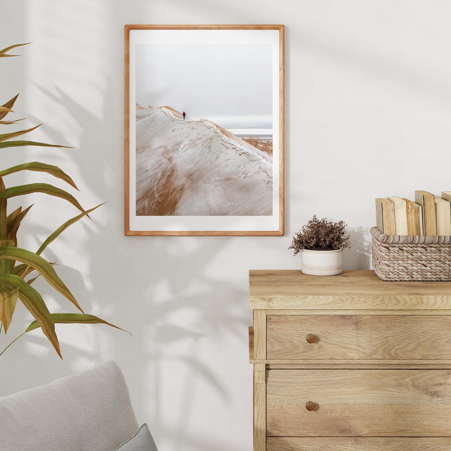 • Handmade Crafted: Each wood frame is meticulously handcrafted, ensuring exceptional precision and attention to detail. The elegantly rounded corners not only enhance its sophistication but also provide a safe, smooth edge that is perfect for families with children. Our frames are crafted using advanced mortise and tenon joinery, reinforced with hardwood splines at each corner, ensuring a nail-free construction that delivers exceptional stability and lasting durability.