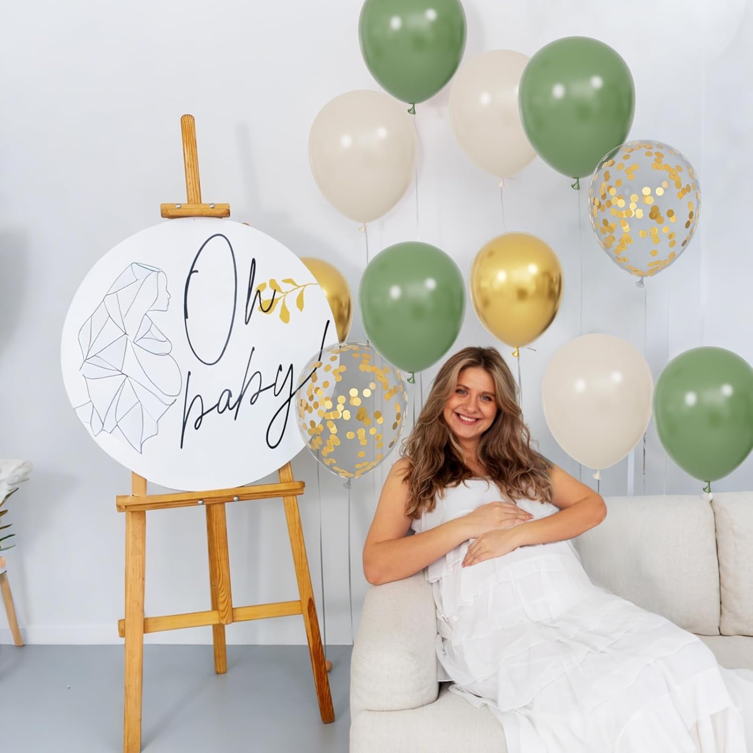 • ✨ Sage green baby shower decorations :The gold balloons in party balloons have a metallic sheen and are filled with gold confetti that catches the light beautifully, adding depth and celebratory luster to your decor.