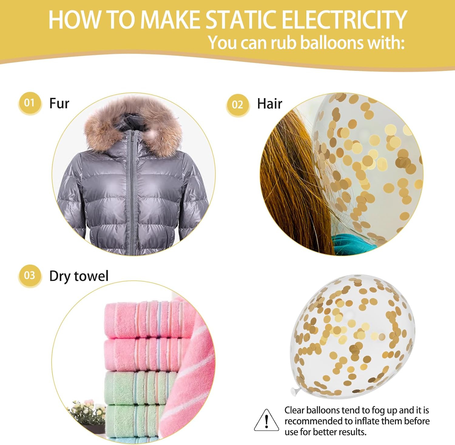 • 【Easy To Use】The set contains sand white and gold balloons with carefully matched color ratios and the attached ribbons. You don't need to spend extra time choosing and matching. You can quickly arrange them after receiving them, easily creating professional decoration effects, saving your precious time and energy. White and gold latex balloons and confetti balloons can be filled with air, helium and even water. Please do not over inflate the balloons to avoid bursting.