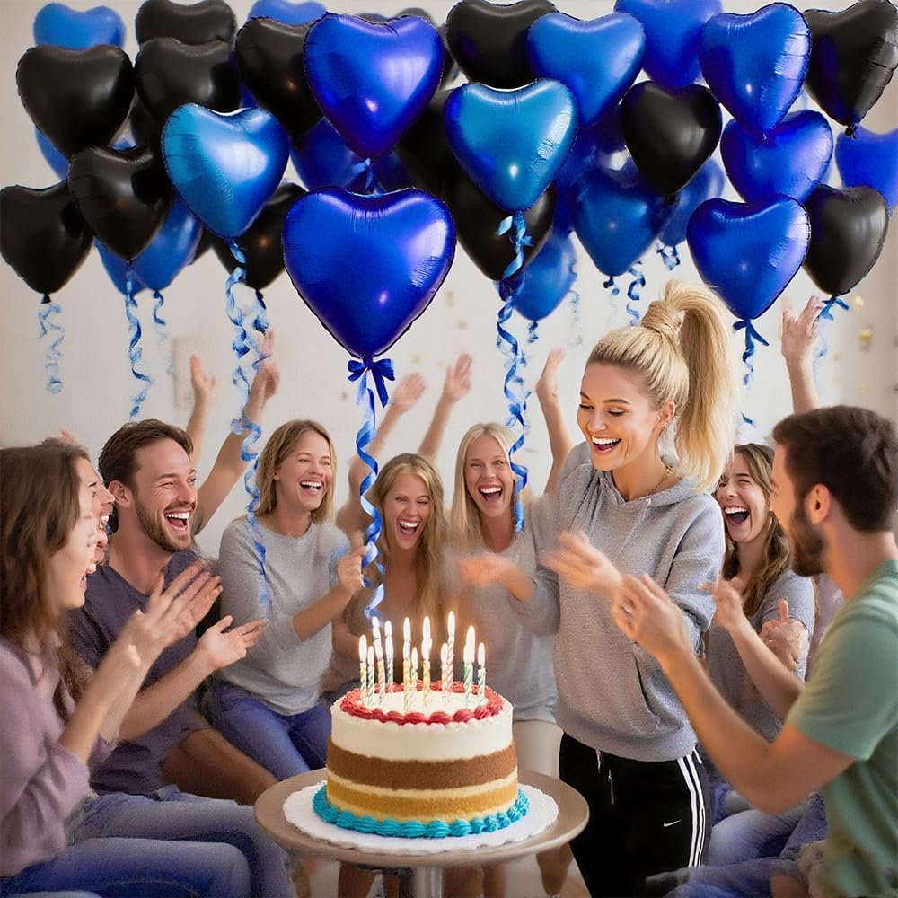 12 pcs Black Blue Heart Foil Balloons,18 Inch Heart Shaped foil Balloon Love balloons for Wedding Decoration Party Birthday Valentines'Day decoration