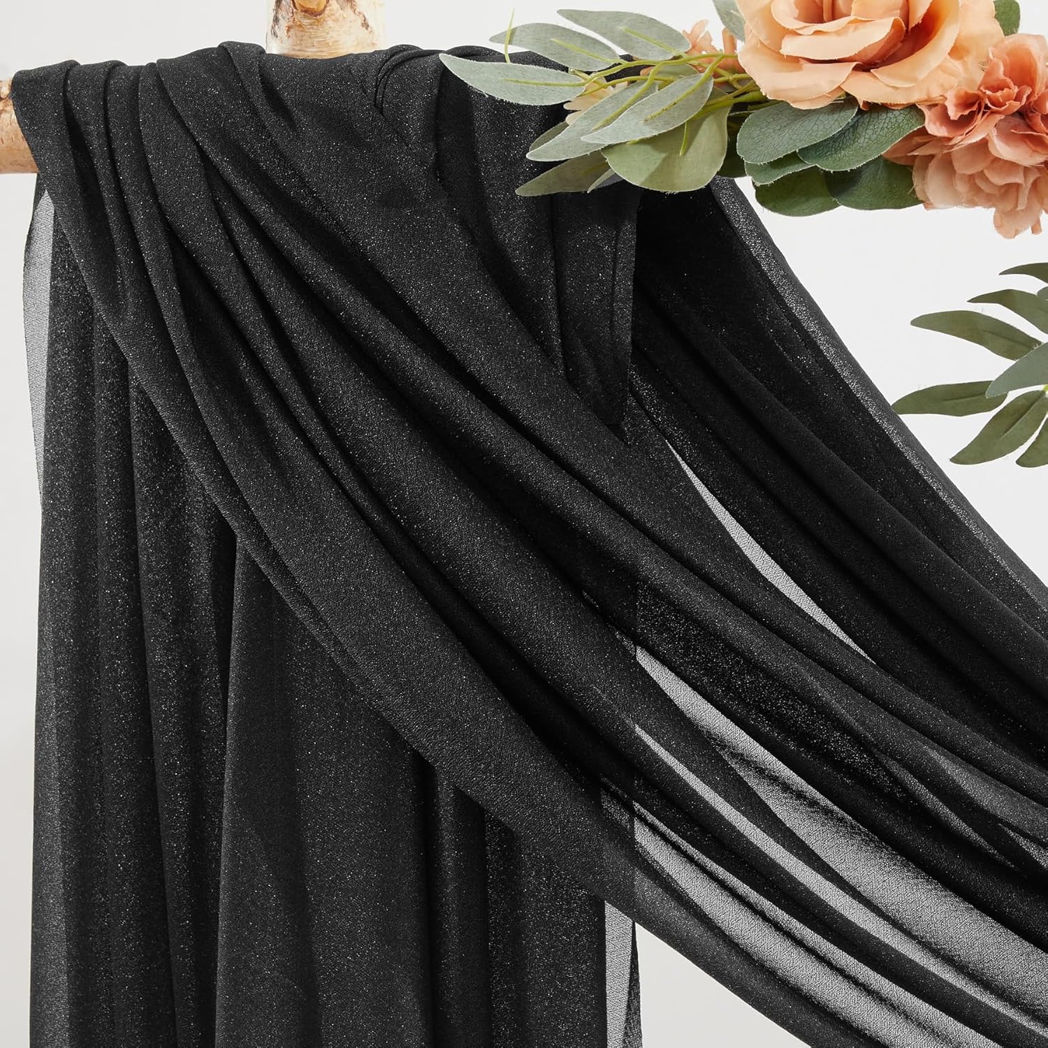 Black Wedding Arch Draping Fabric 3 Panels 30'' x 20FT Black Drapes Sheer Fabric Backdrop Arch Draping Fabrics for Wedding Ceremony Birthday Party Bridal Shower Decoration