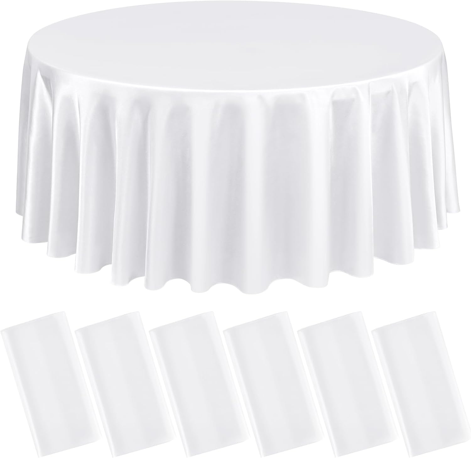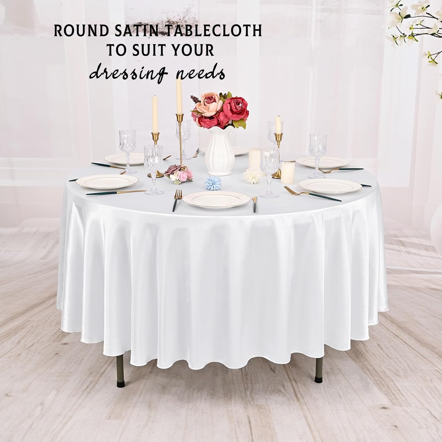 6 Packs Satin Tablecloth 120 Inch White Round Table Cloth Silk Tablecloth Smooth Fabric Overlay Satin Table Cover Decoration for Wedding Party Banquet Events