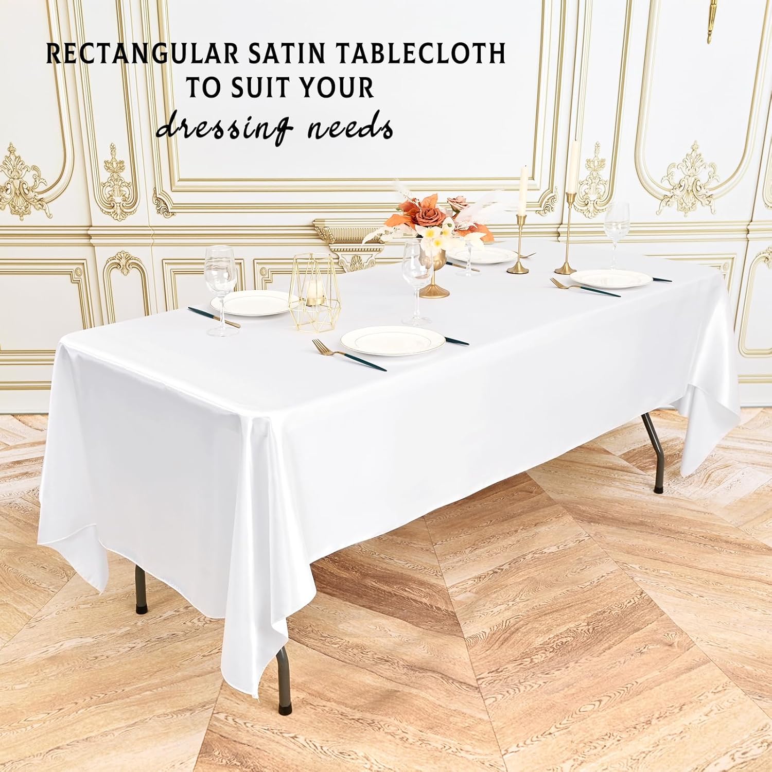 10 Packs Satin Tablecloth 57 x 108 Inch White Rectangular Table Cloth Silk Tablecloth Smooth Fabric Overlay Satin Table Cover Decoration for Wedding Party Banquet Events