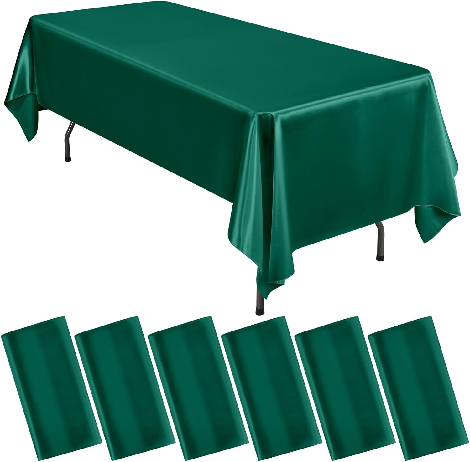 • Package List: You will get 6 packs dark green satin tablecloth.The size of satin table covers are 57x108 inch/145x275 cm, which is large enough to decorate a table that can accommodate 10-12 persons.The tablecloth size is usually larger than your table size. Please measure your table size before buying.