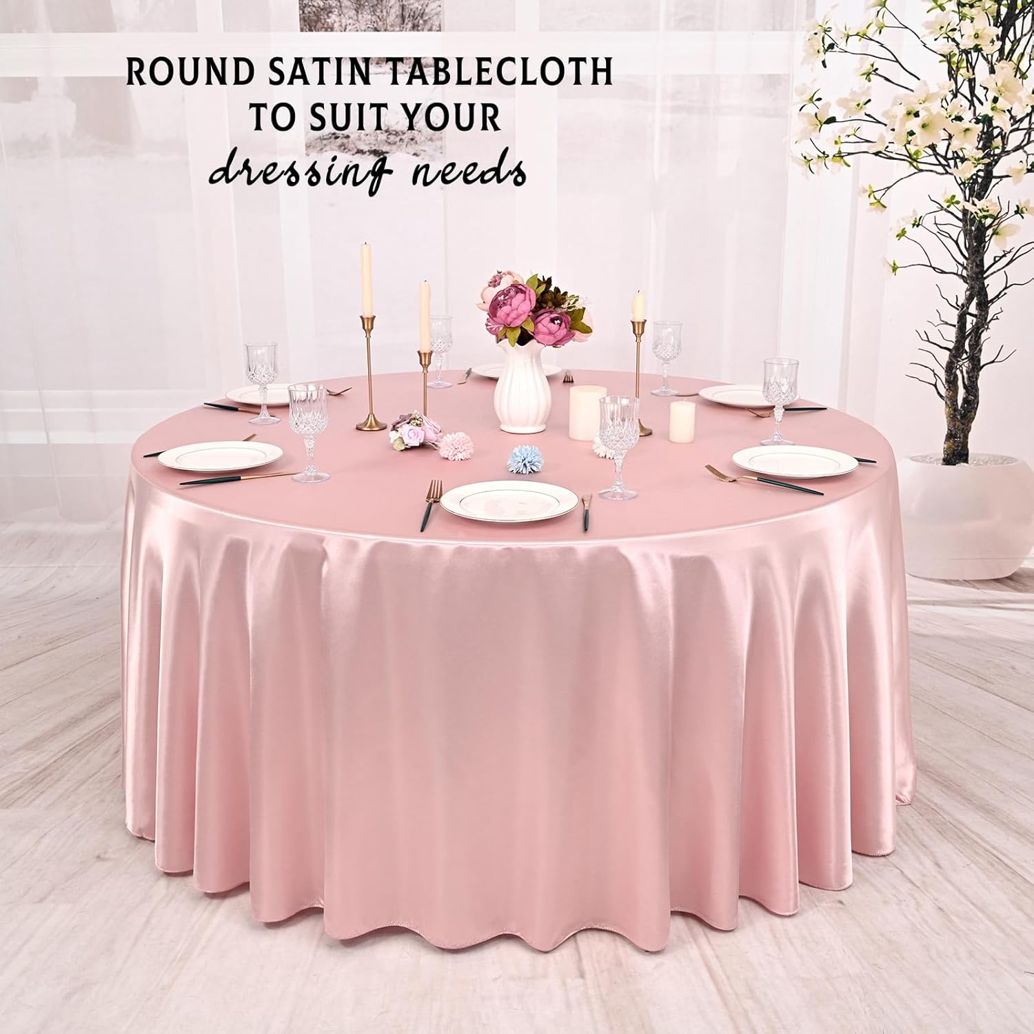 6 Packs Satin Tablecloth 120 Inch Rose Gold Round Table Cloth Silk Tablecloth Smooth Fabric Overlay Satin Table Cover Decoration for Wedding Party Banquet Events