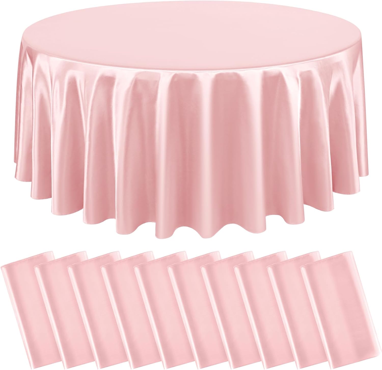 10 Packs Satin Tablecloth 120 Inch Rose Gold Round Table Cloth Silk Tablecloth Smooth Fabric Overlay Satin Table Cover Decoration for Wedding Party Banquet Events